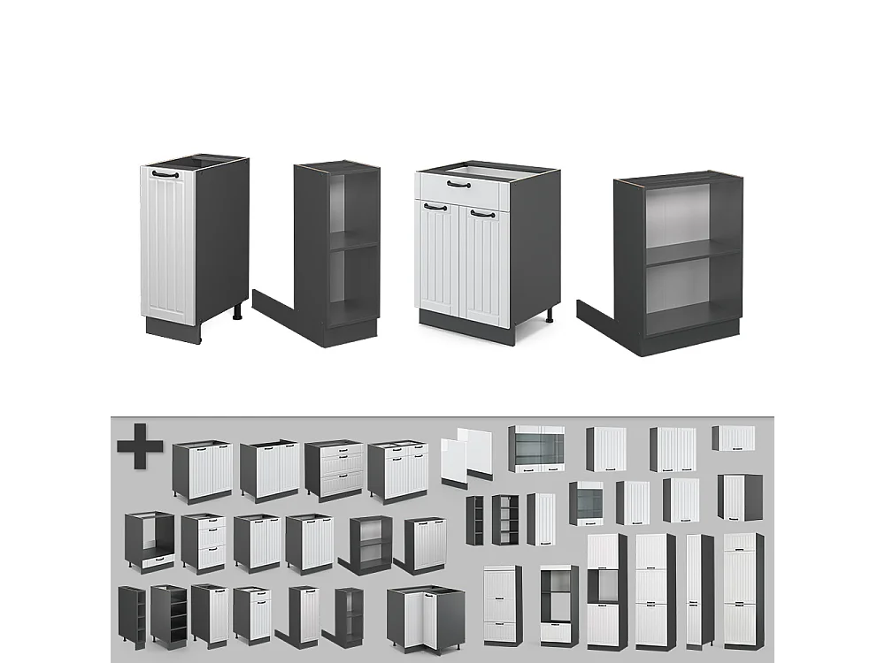 Îlot de cuisine anthracite maison de campagne/blanc 90x60x82 fame-line