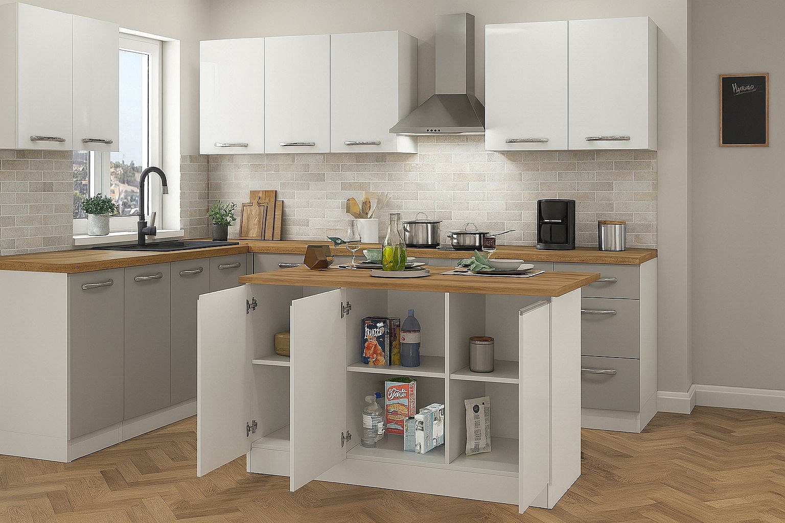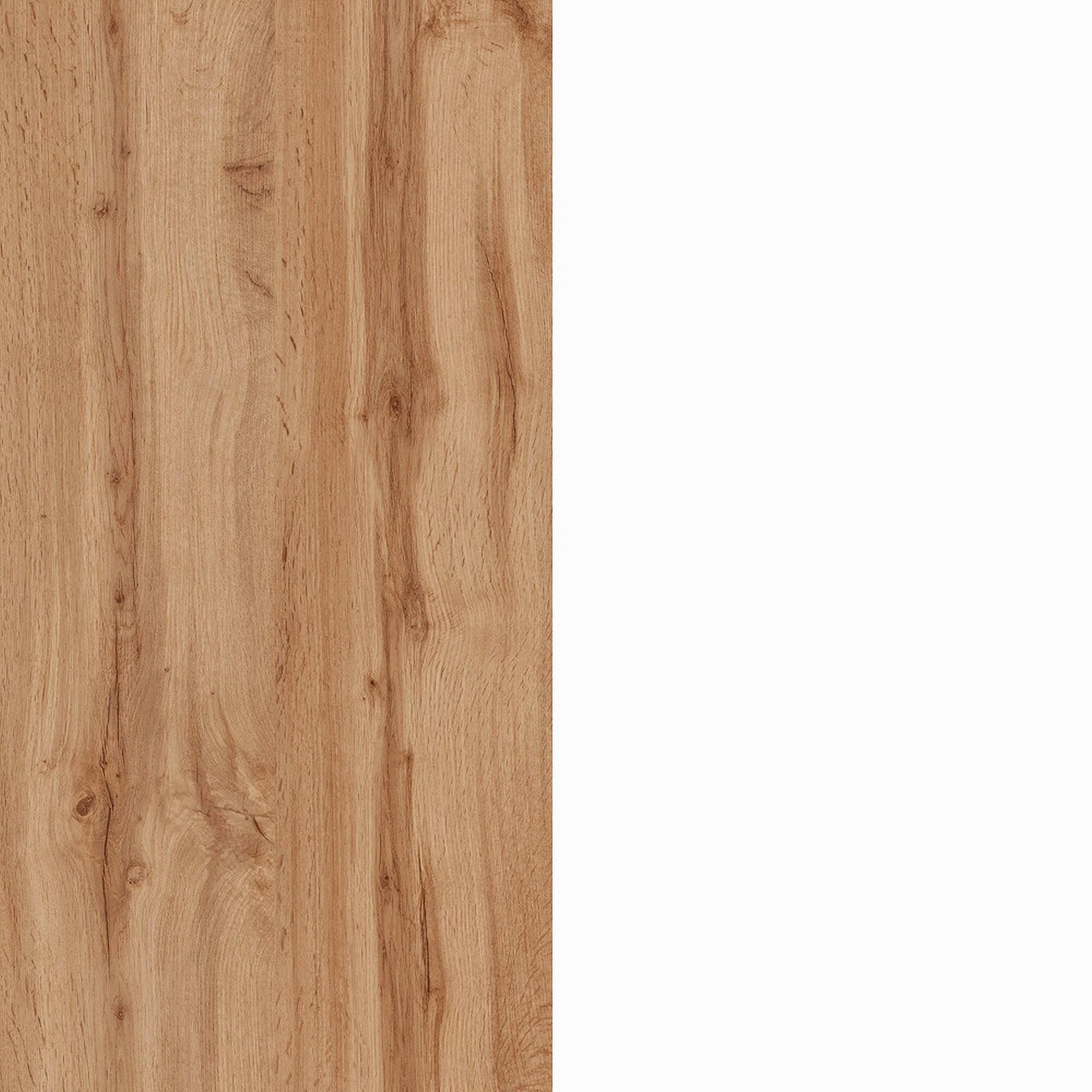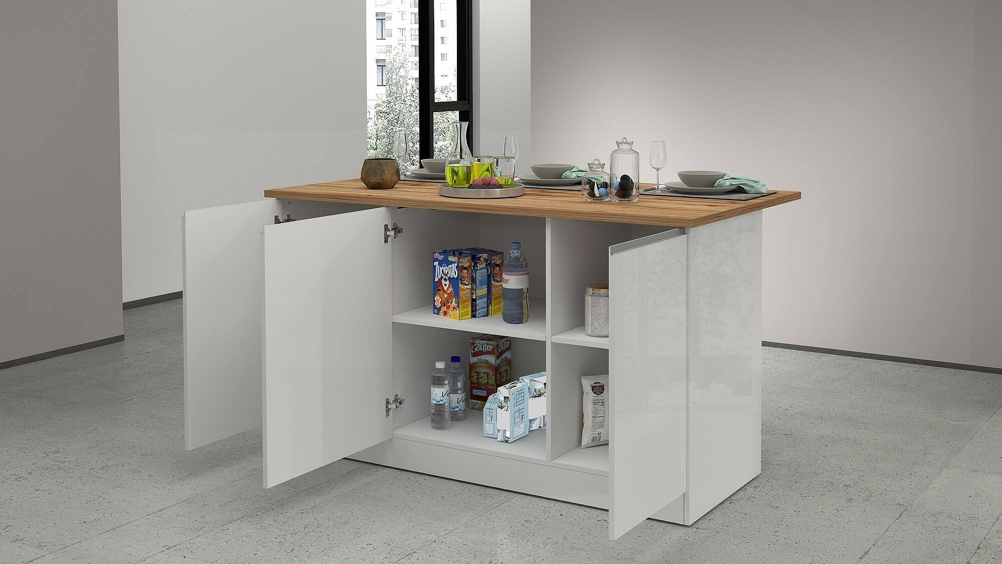 ÃŽlot de cuisine Daffaticat, Armoire polyvalente, Meuble de kitchenette, Table auxiliaire, 100% Made in Italy, 125x90h90 cm, Blanc brillant et chêne