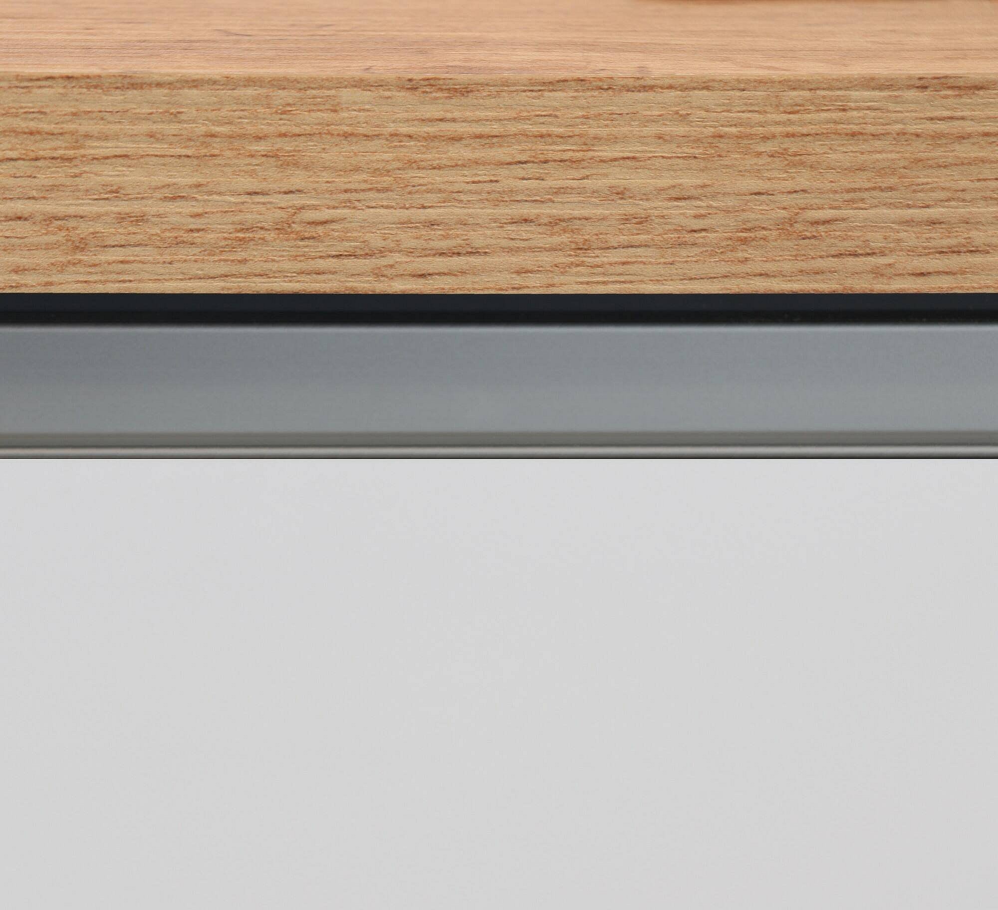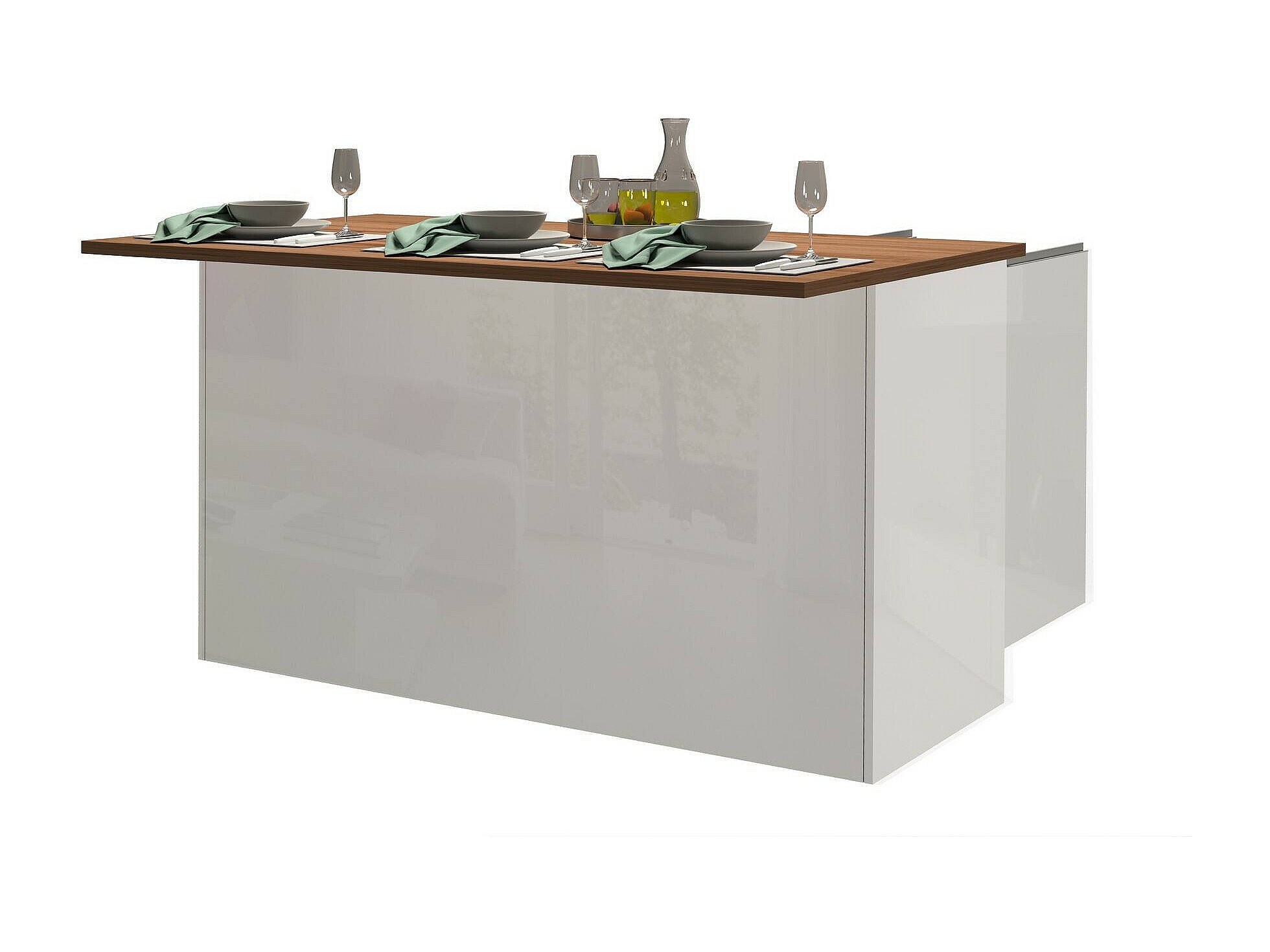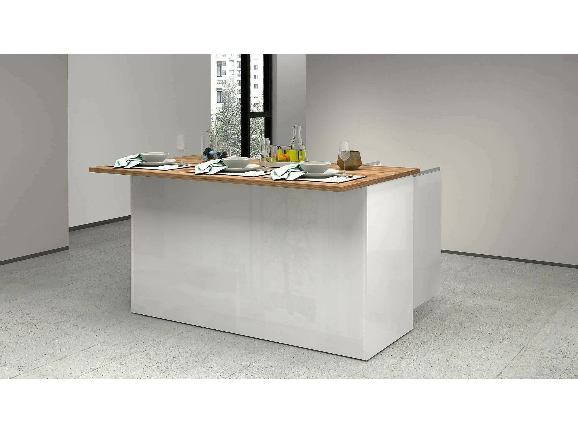 ÃŽlot de cuisine Dcarnelo, Armoire polyvalente, Meuble de kitchenette, Table auxiliaire, 100% Made in Italy, 155x90h90 cm, Blanc brillant et chêne