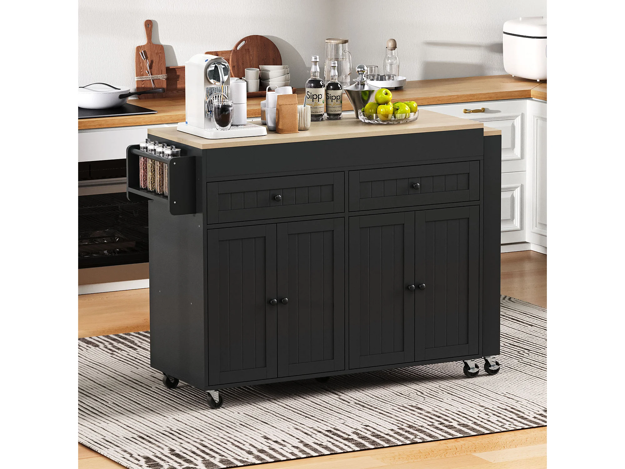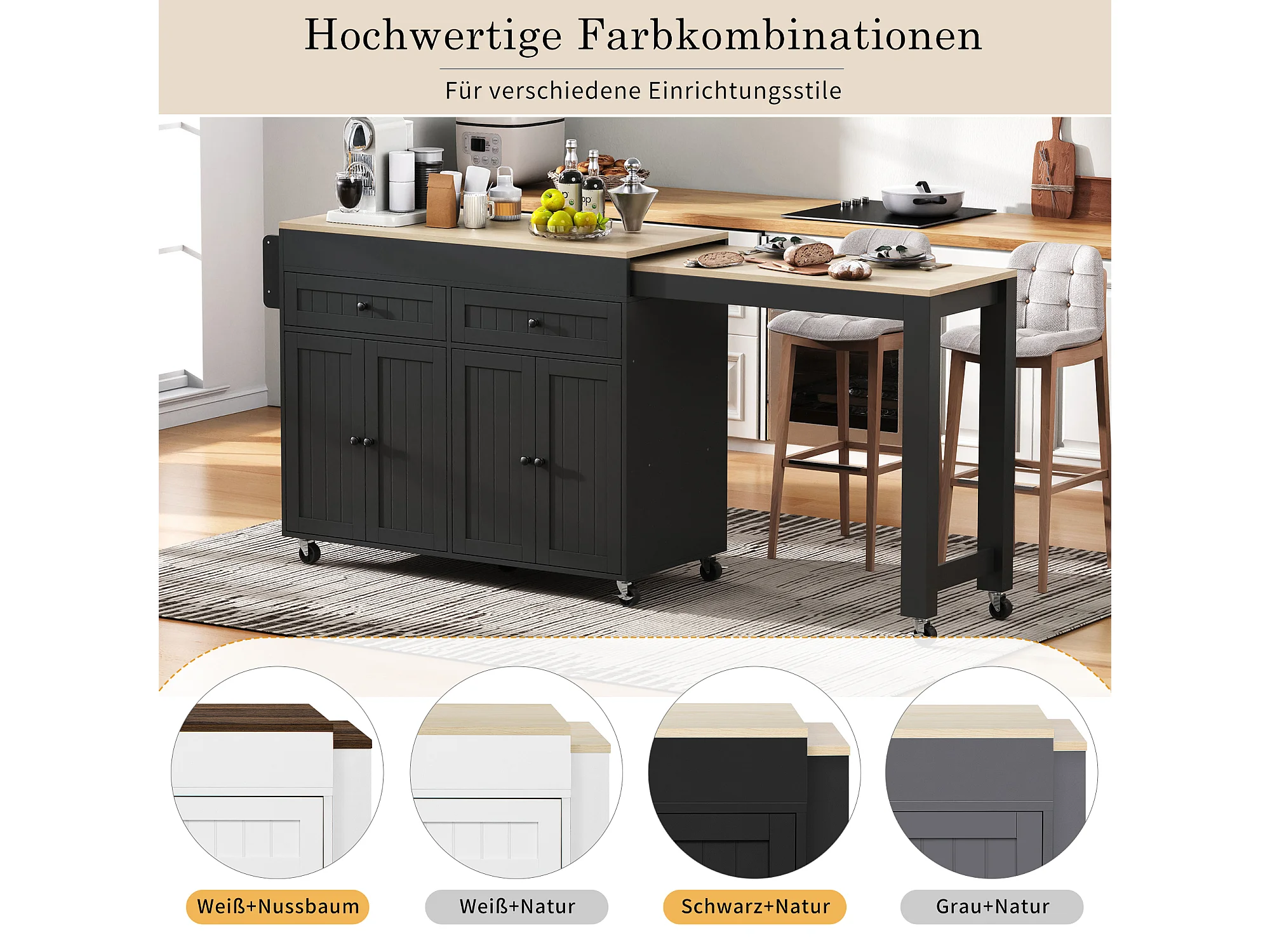 Îlot de cuisine mobile avec plan de travail extensible et tiroirs, MDF, noir et naturel (180.5x45x92.2 cm)