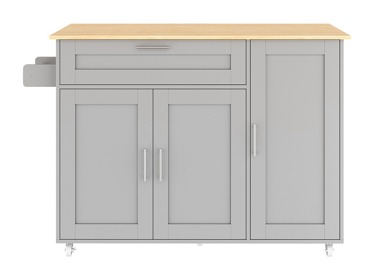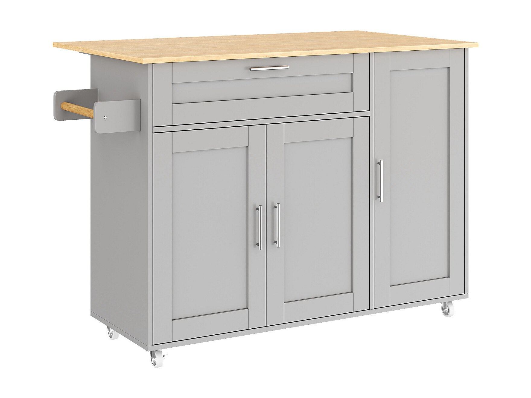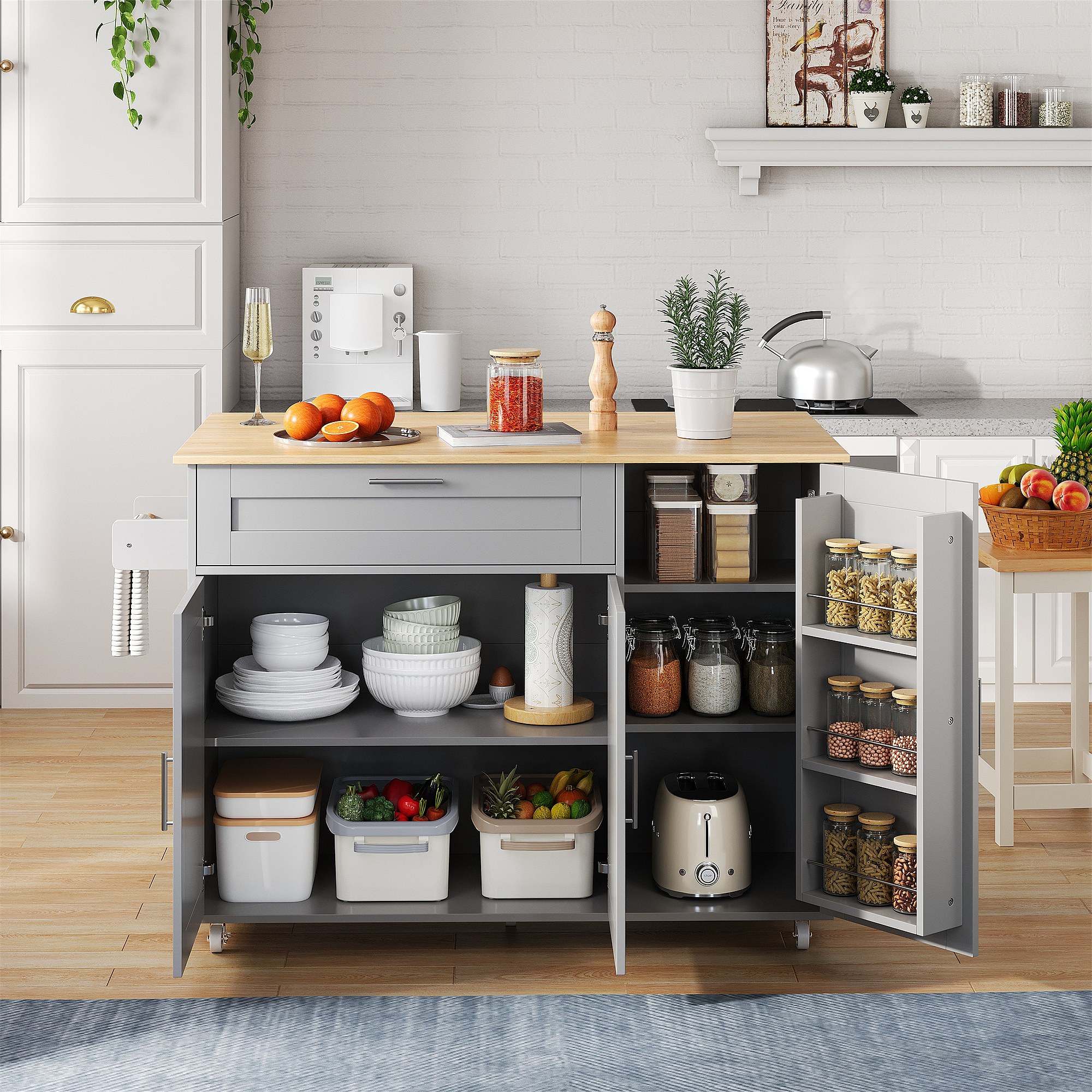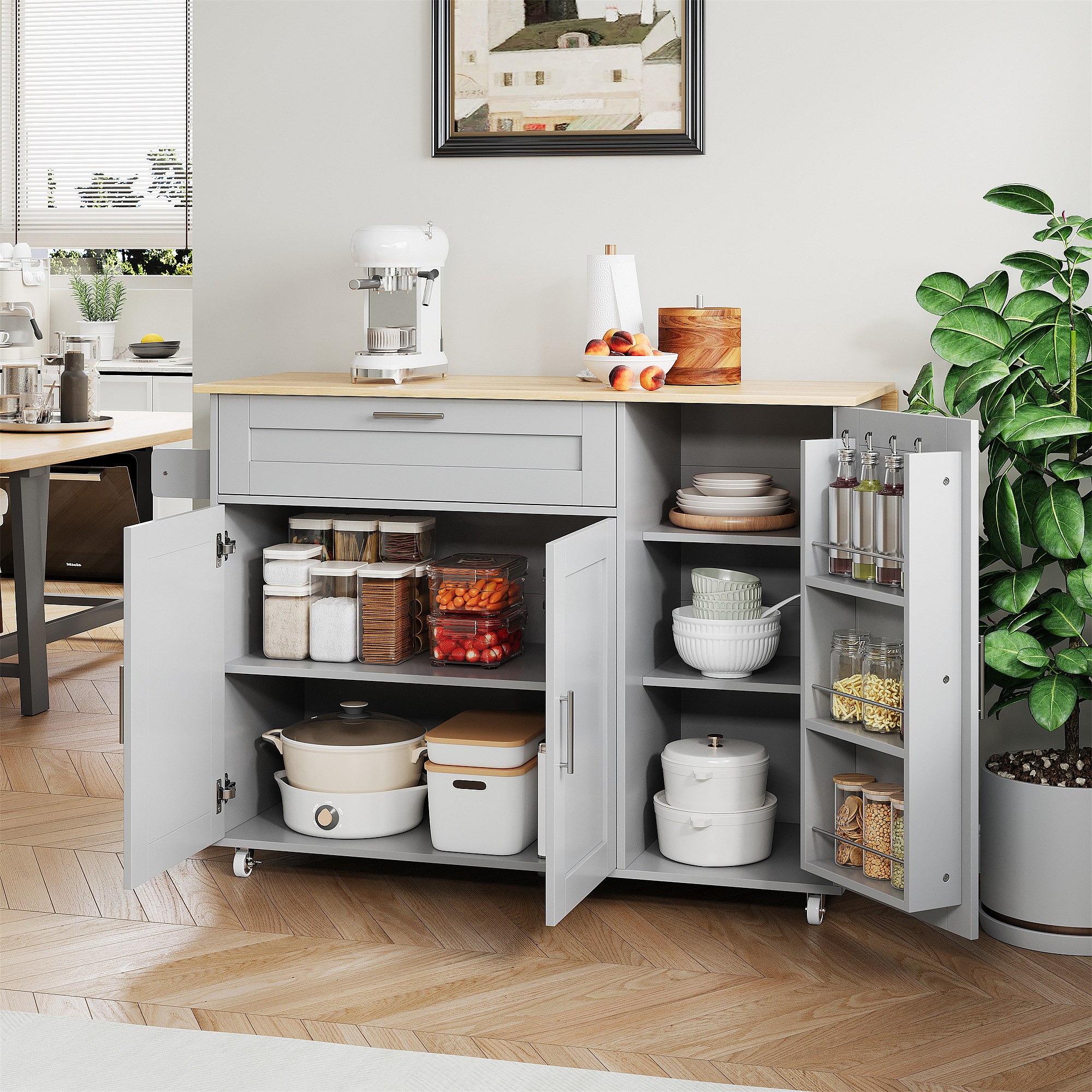 Îlot de cuisine mobile avec plateau pliant et étagère à épices, 5 roulettes - gris