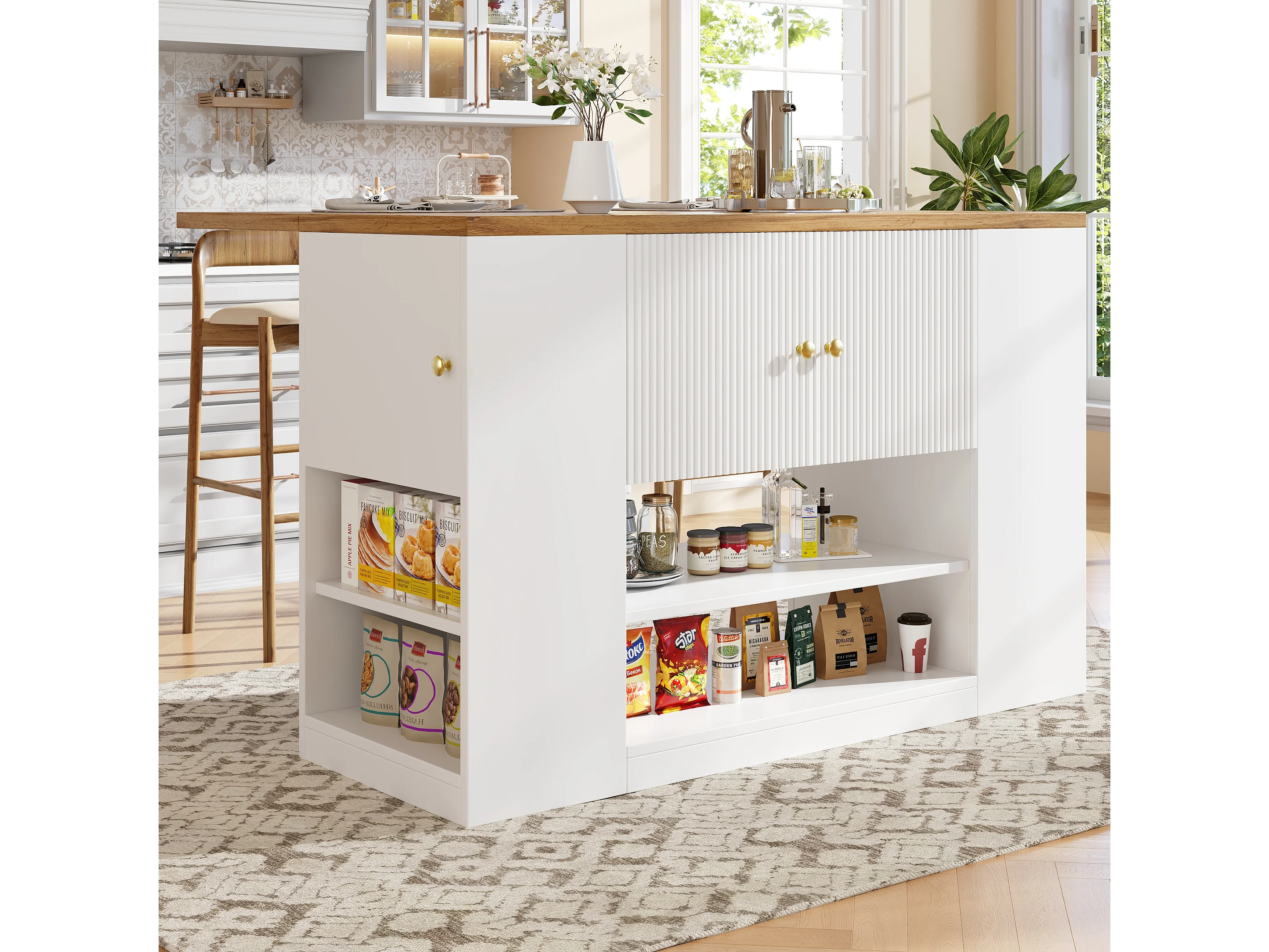 Îlot de cuisine moderne - 140 x 40 x 90 cm - avec tiroirs + étagères + portes - MDF + métal - blanc