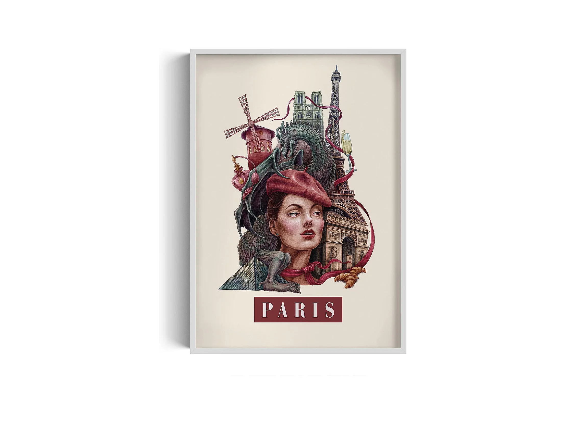 Image encadré, déco urbaine élégante Paris, cadre blanc art Paris, imprimé Paris 70x100 cm, image Paris minimaliste.