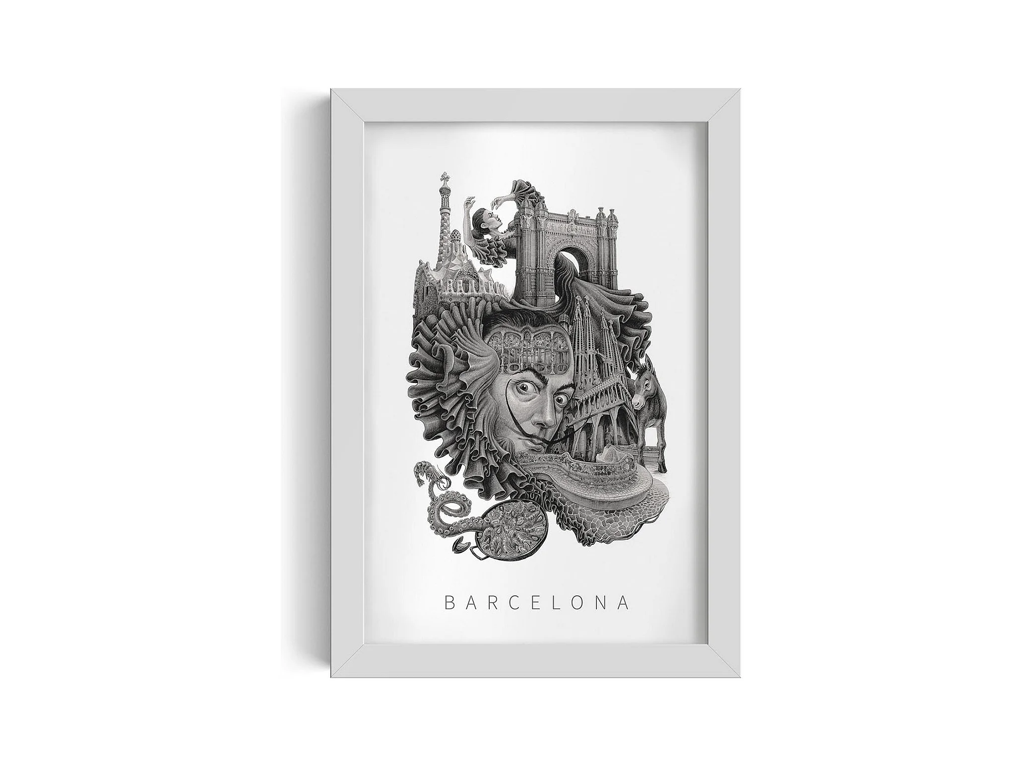 Image encadré, décor espagnol vibrant, cadre blanc art Barcelone, imprimé ville minimaliste Barcelone, 20x30 cm.