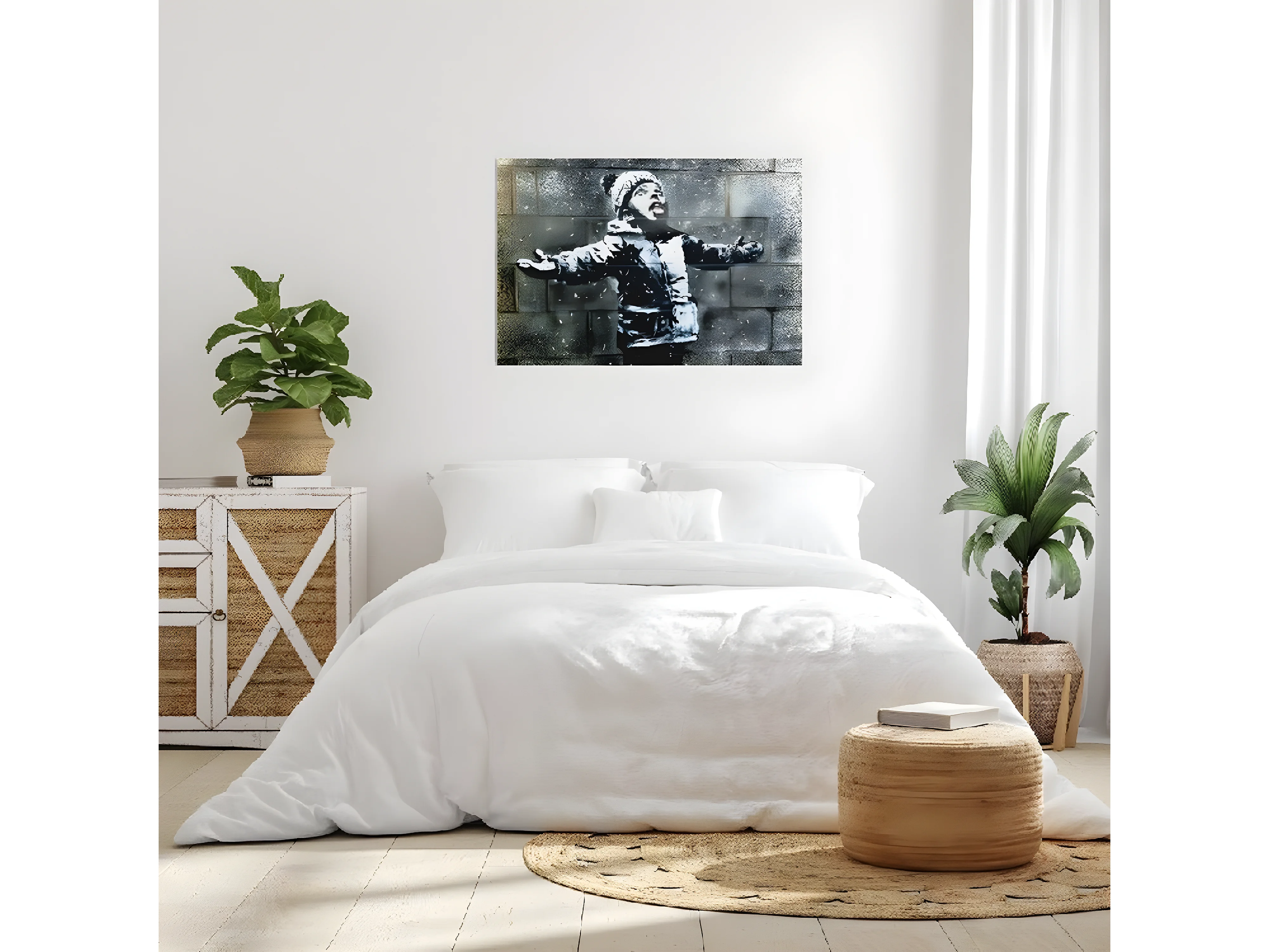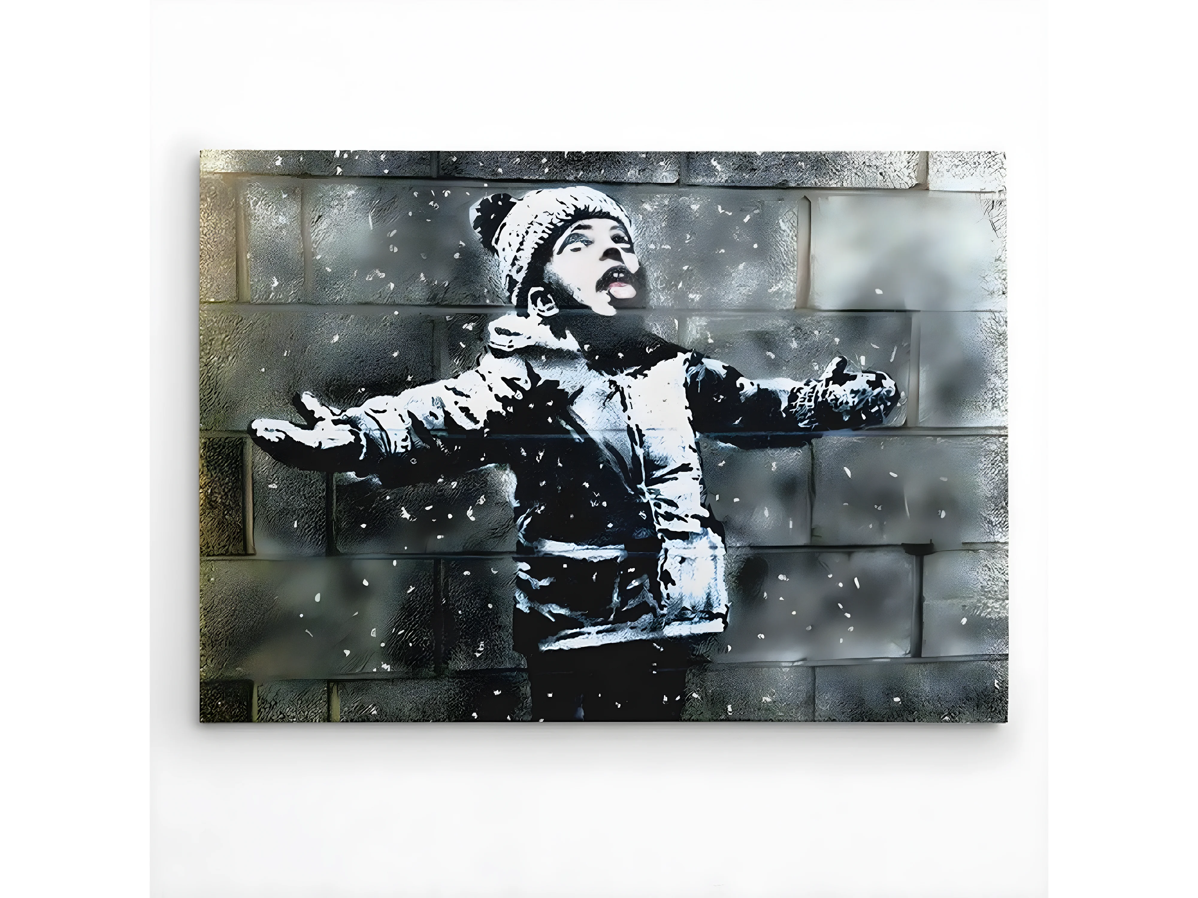 Impression sur Toile Banksy Let It Snow, Noir, 100x3x70 cm, DESIGN MANIA