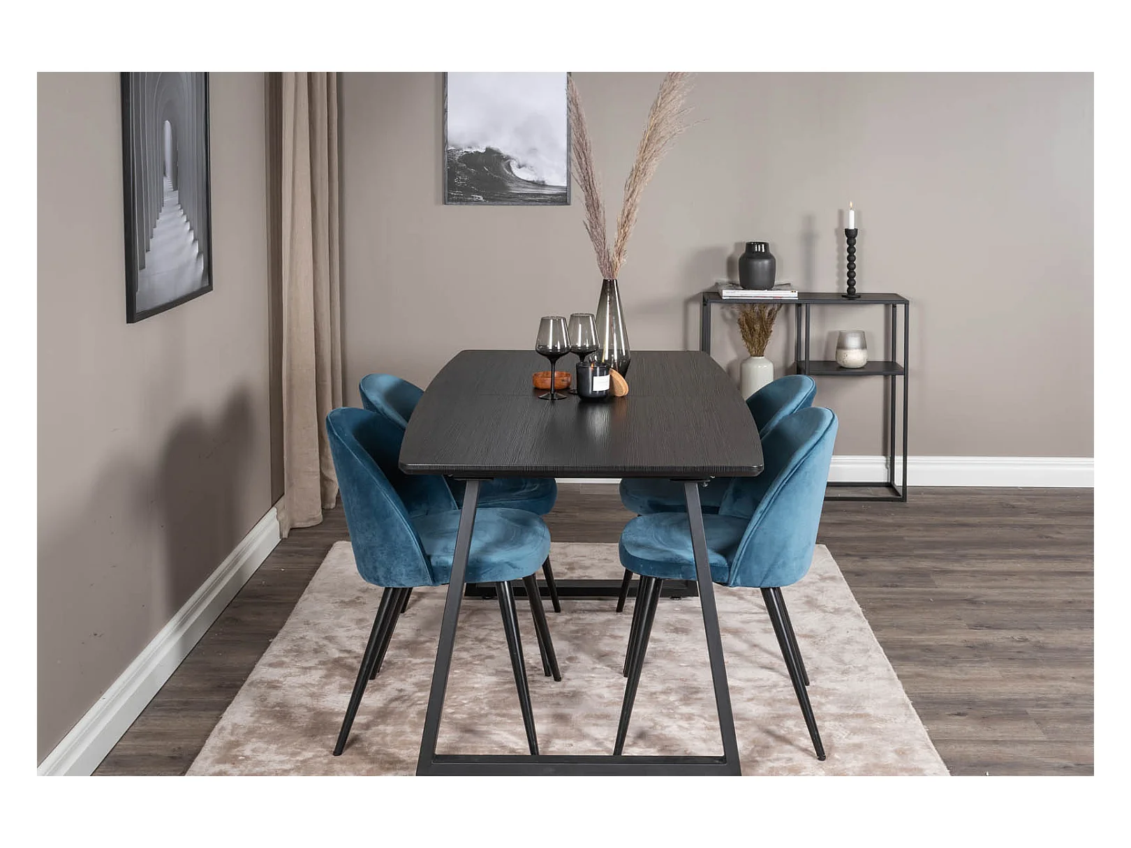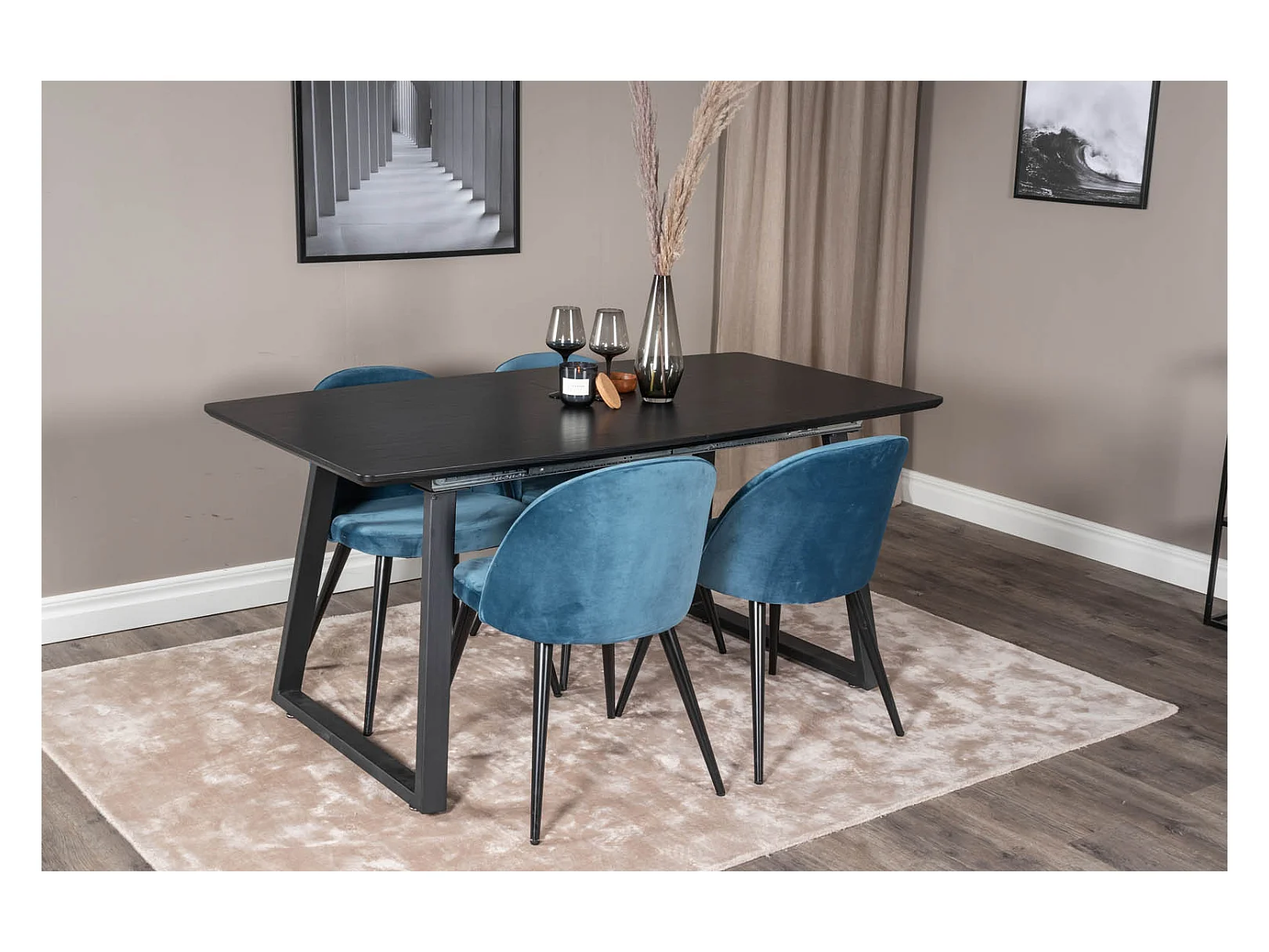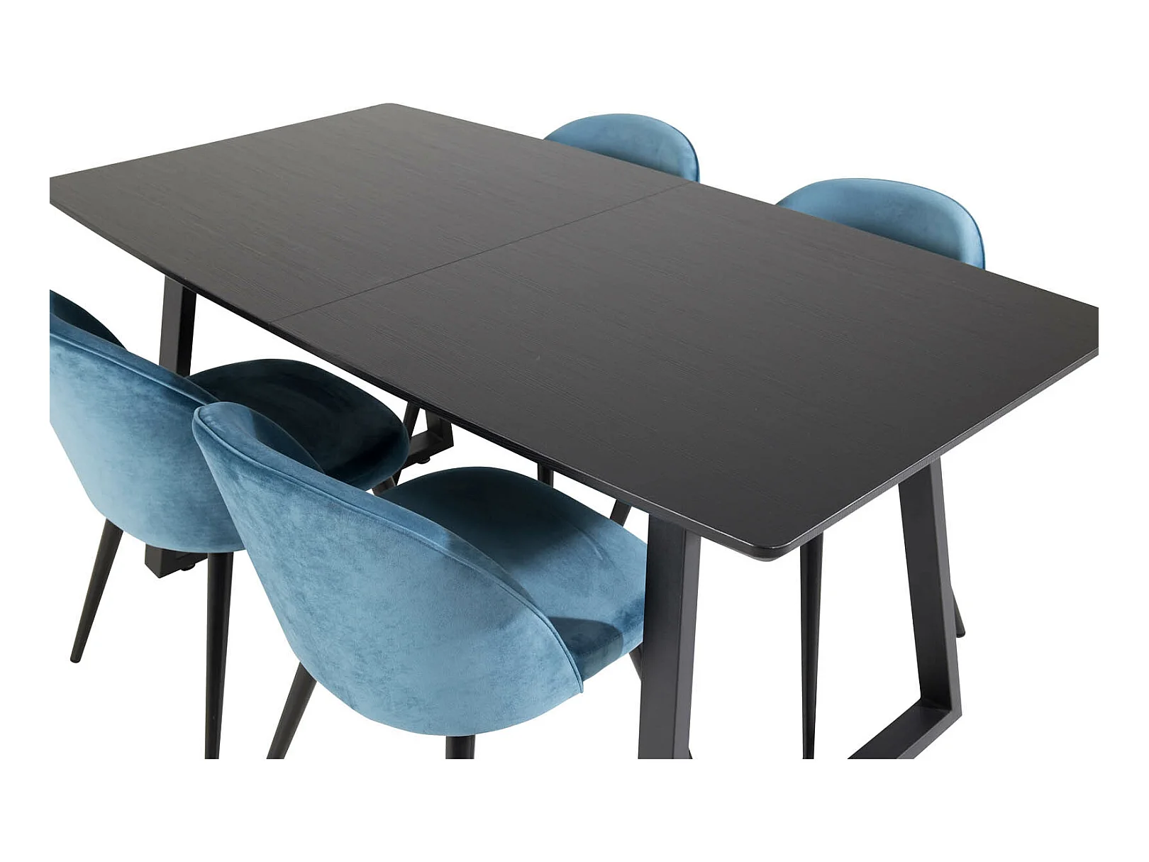 IncaBLBL ensemble table, table extensible longueur cm160 / 200 noir et 4 Velvet chaises Velours bleu, noir.