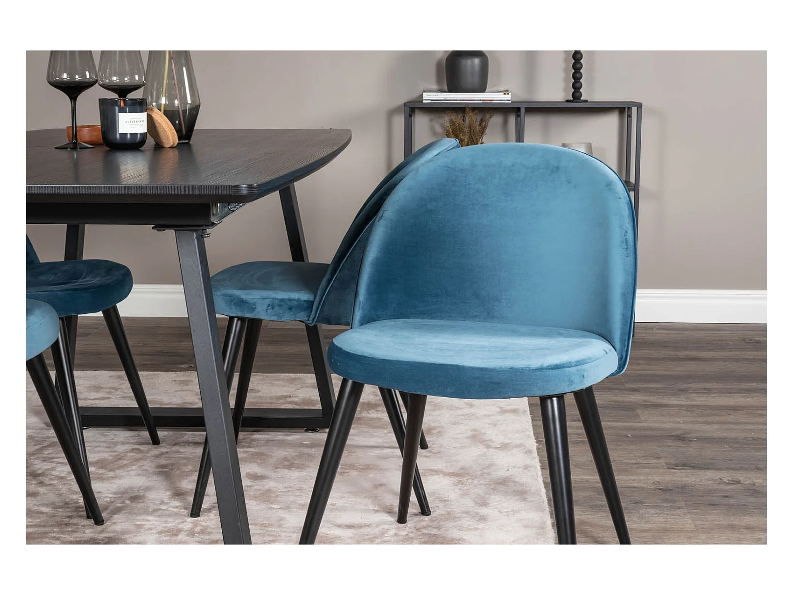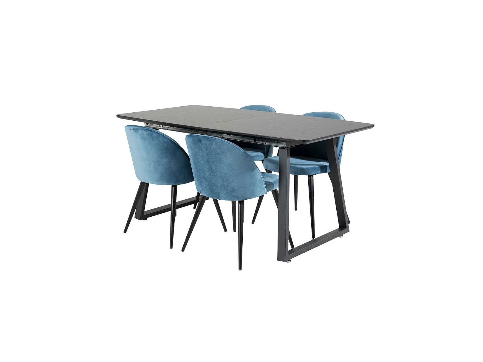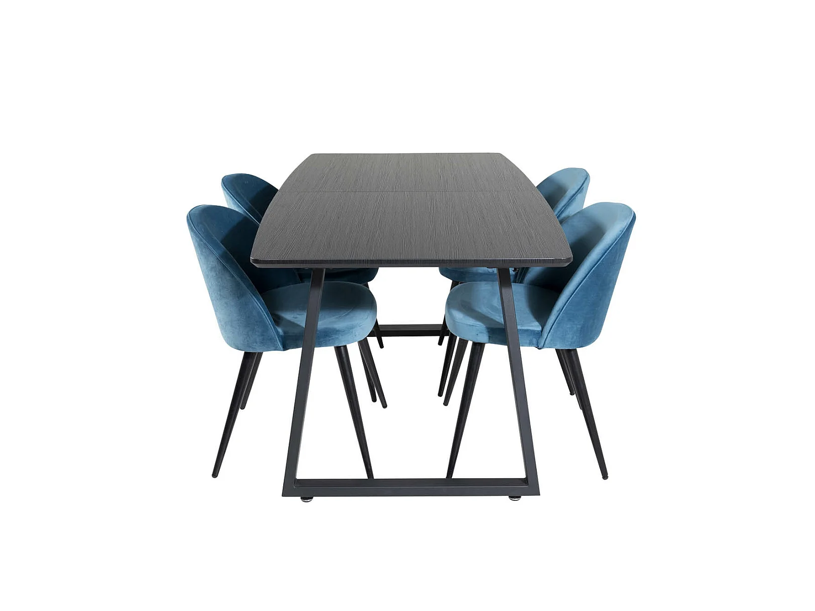 IncaBLBL ensemble table, table extensible longueur cm160 / 200 noir et 4 Velvet chaises Velours bleu, noir.