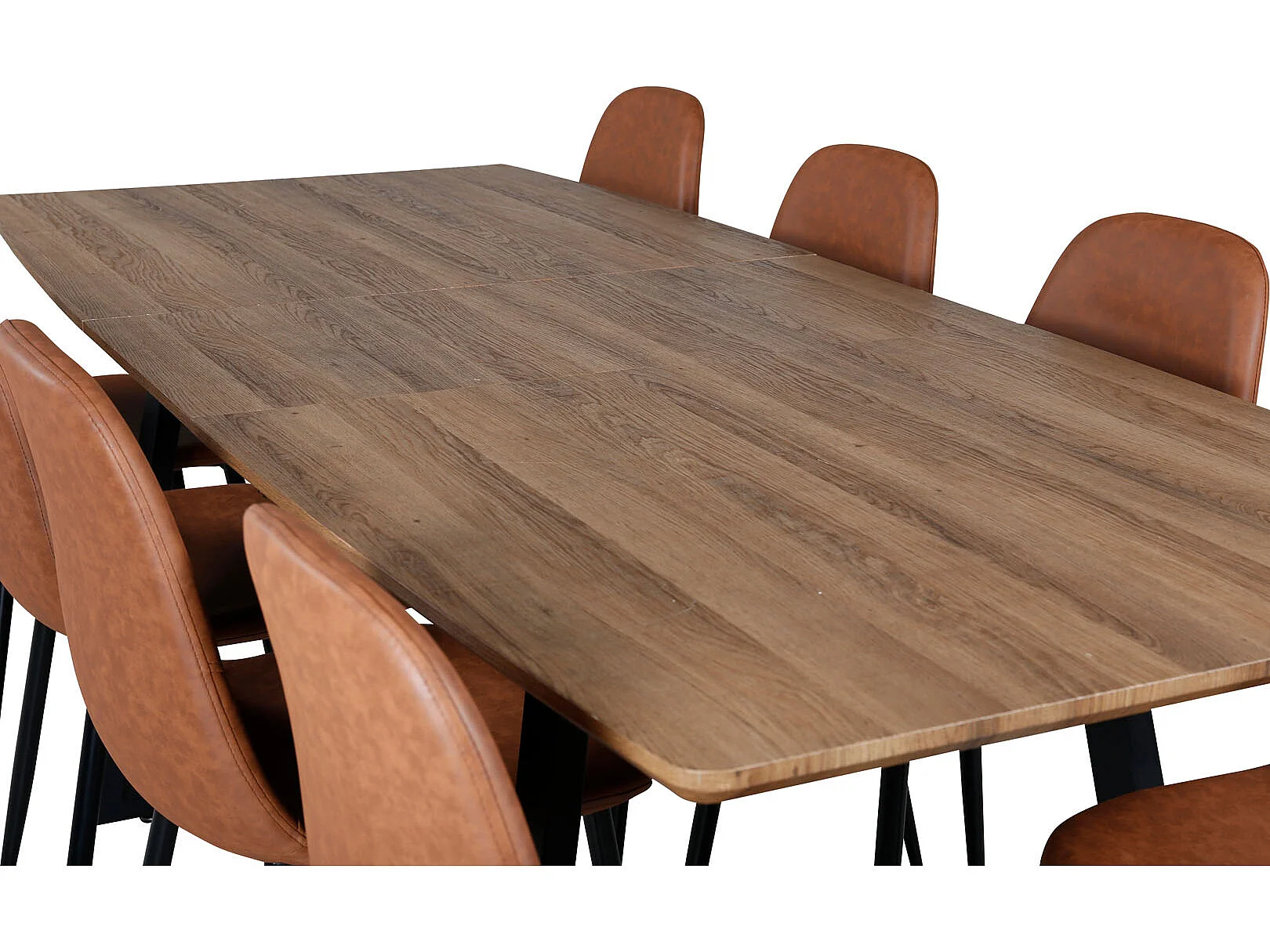IncaNABL ensemble table, table extensible longueur cm160 / 200 El bois décor et 8 Polar chaises Similicuir PU marron.
