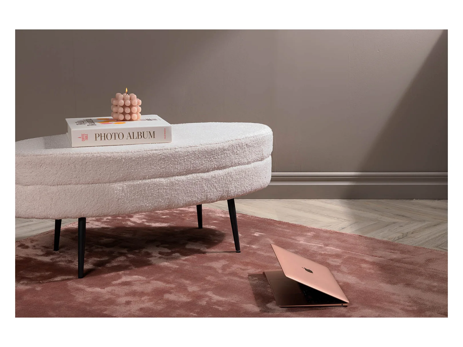 Tabouret bas coffre de rangement en tissu bouclette et métal noir - Crème - EZEL