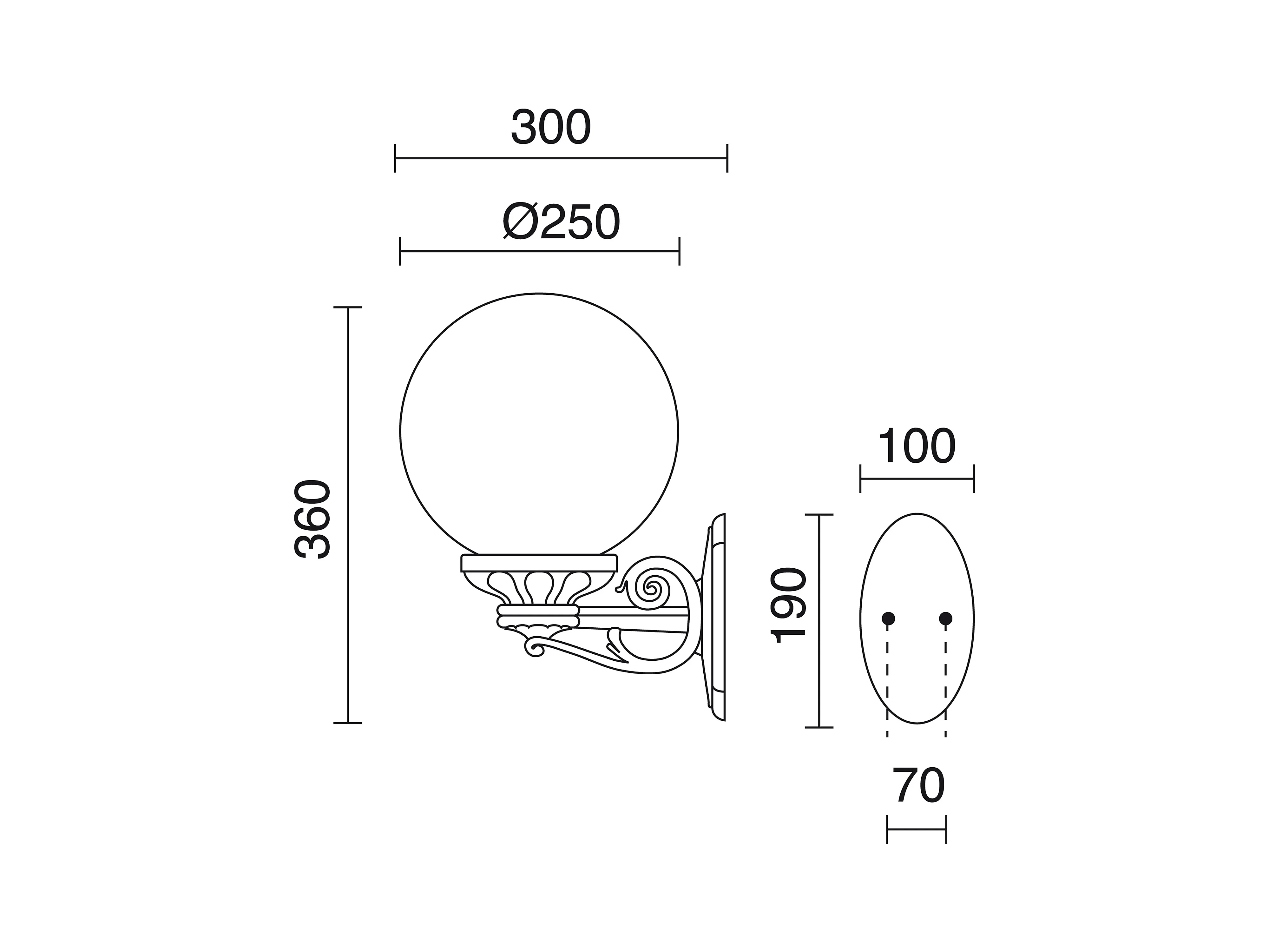 Applique globe classique Indura-h30cm x d.ø25cm-e27 70w-resine-opale-IP55-noir