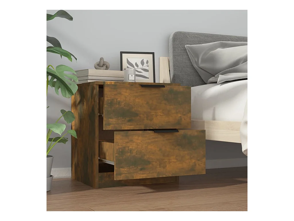 Tuncay Tables de chevet 2 pcs chêne fumé 40x30x50 cm bois d'ingénierie