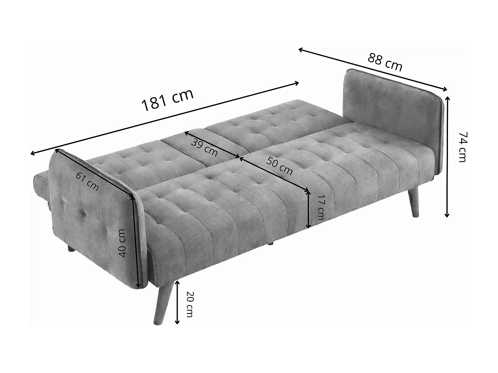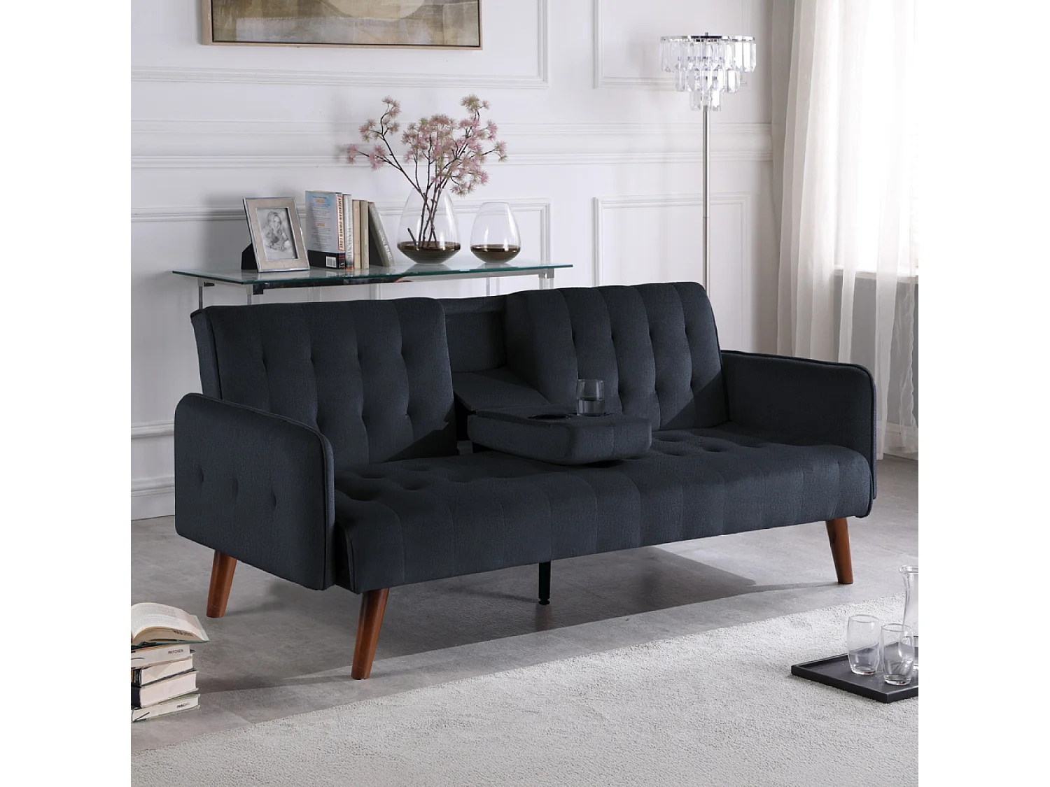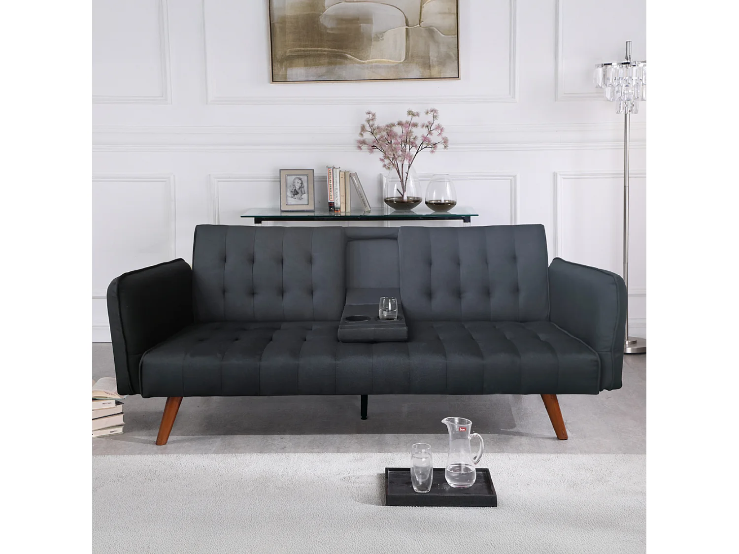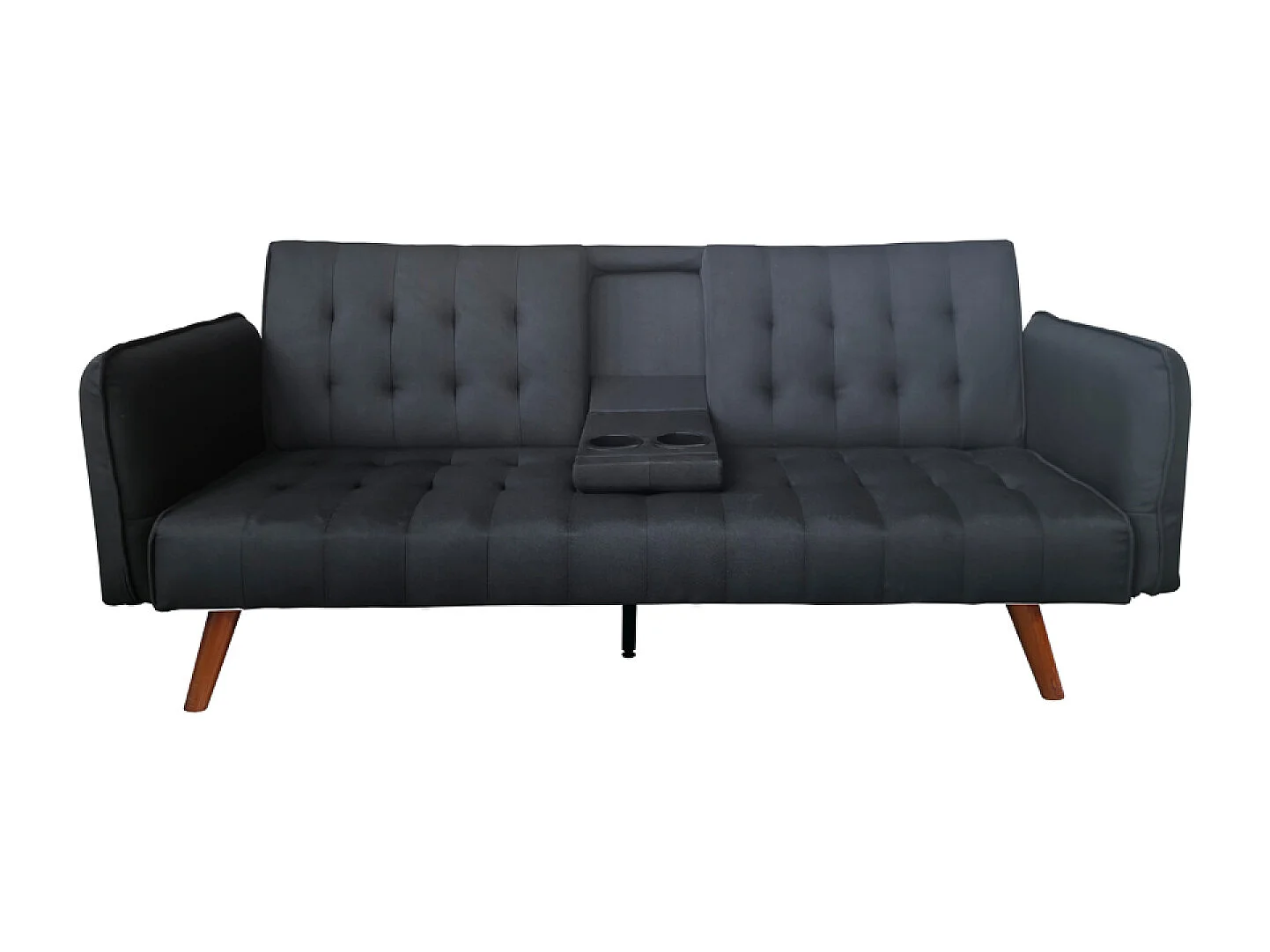 Canapé 3 places convertible avec tablette centrale rabattable noir INVERNESS