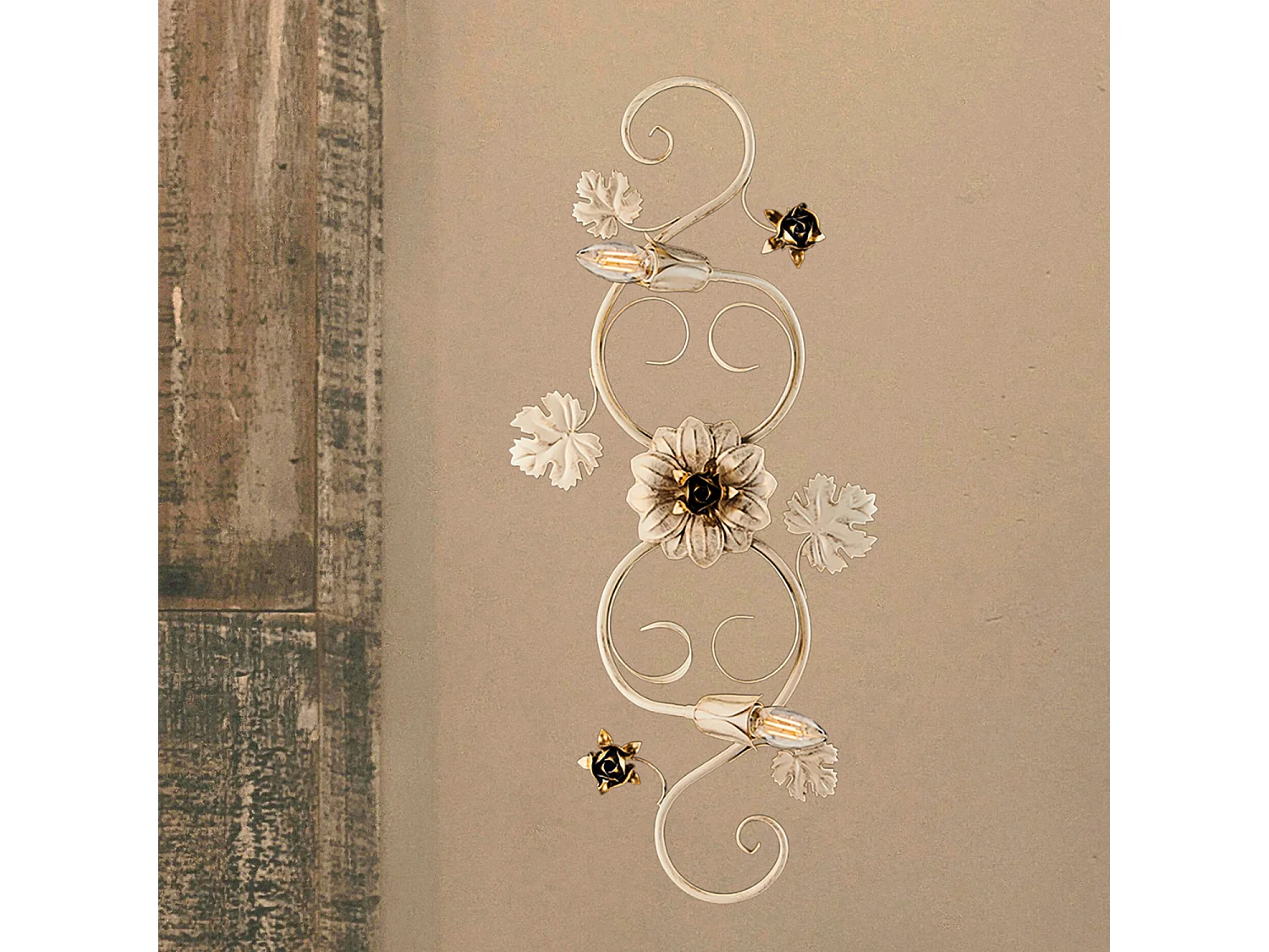 Iris Plafonnier en fer laqué ivoire décor or antique 2 lumières d.74 X 37 BL169-PL2-AV