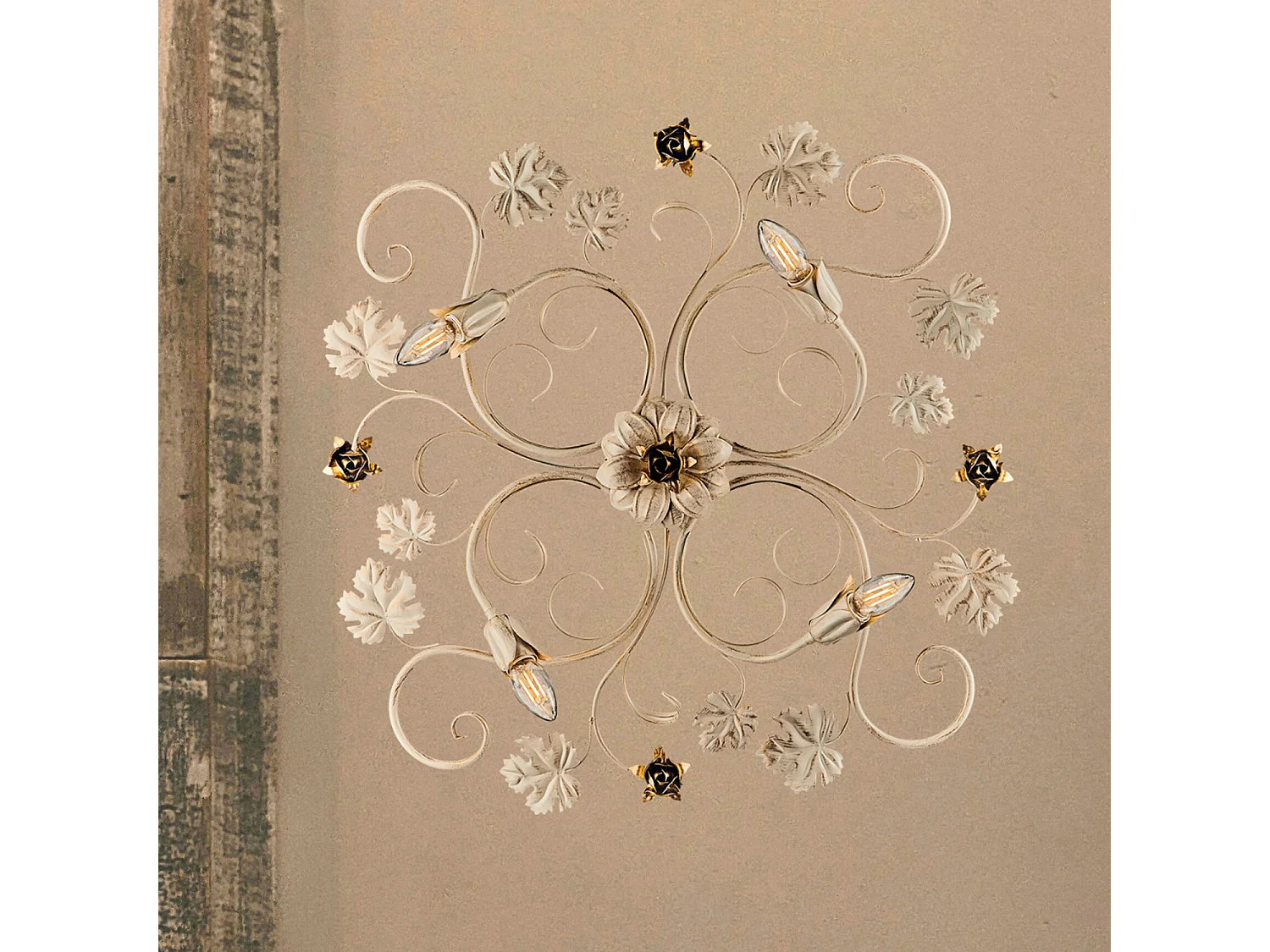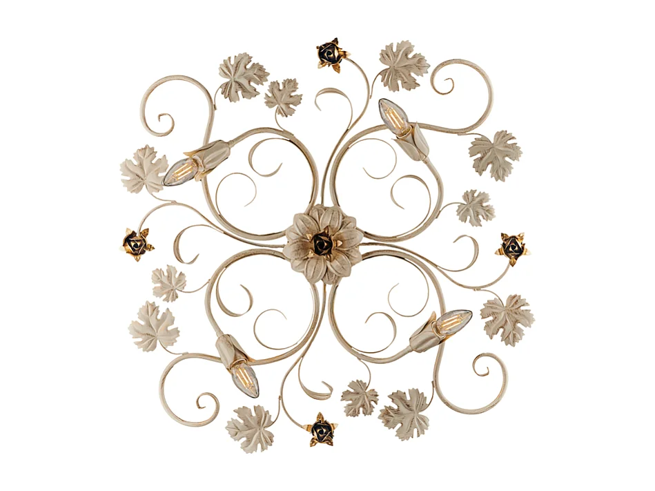 Iris Plafonnier en fer laqué ivoire décor or antique 4 lumières H.17 d.76 BL169-PL4-AV