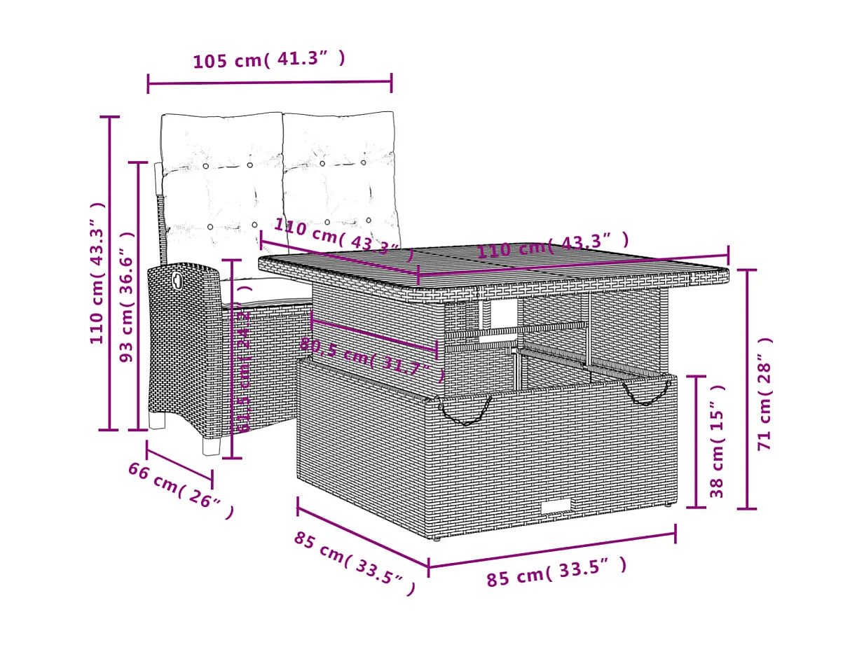 Isyra Ensemble à manger de jardin coussins 2pcs noir résine tressée