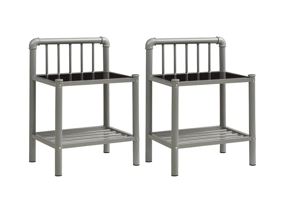 Tayeb Tables de chevet 2 pcs Gris et noir Métal et verre