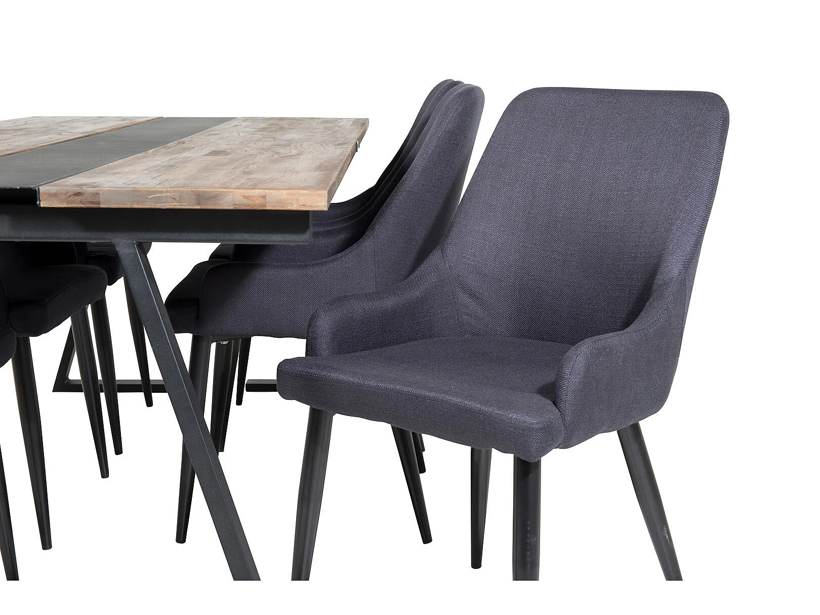 Jakarta ensemble table, table teck et 6 Plaza chaises noir.