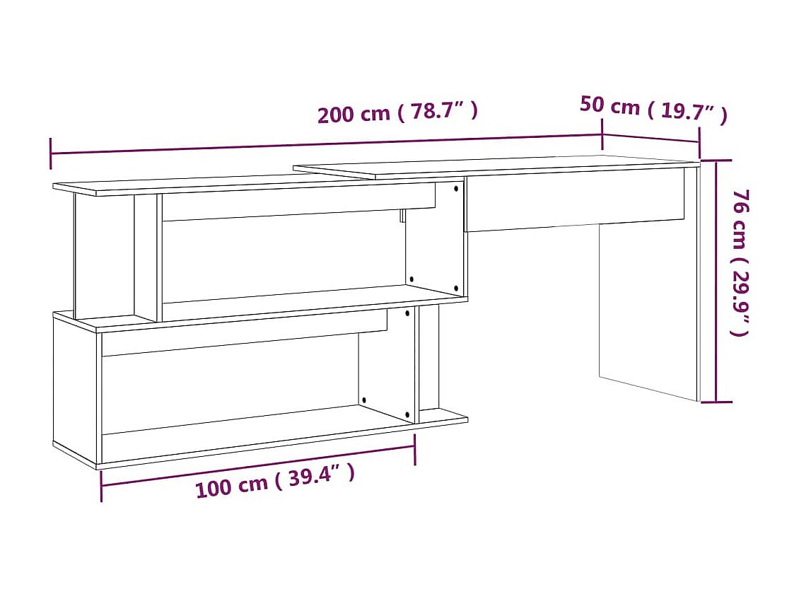 Bureau d'angle Sonoma gris 200x50x76 cm Bois d'ingénierie