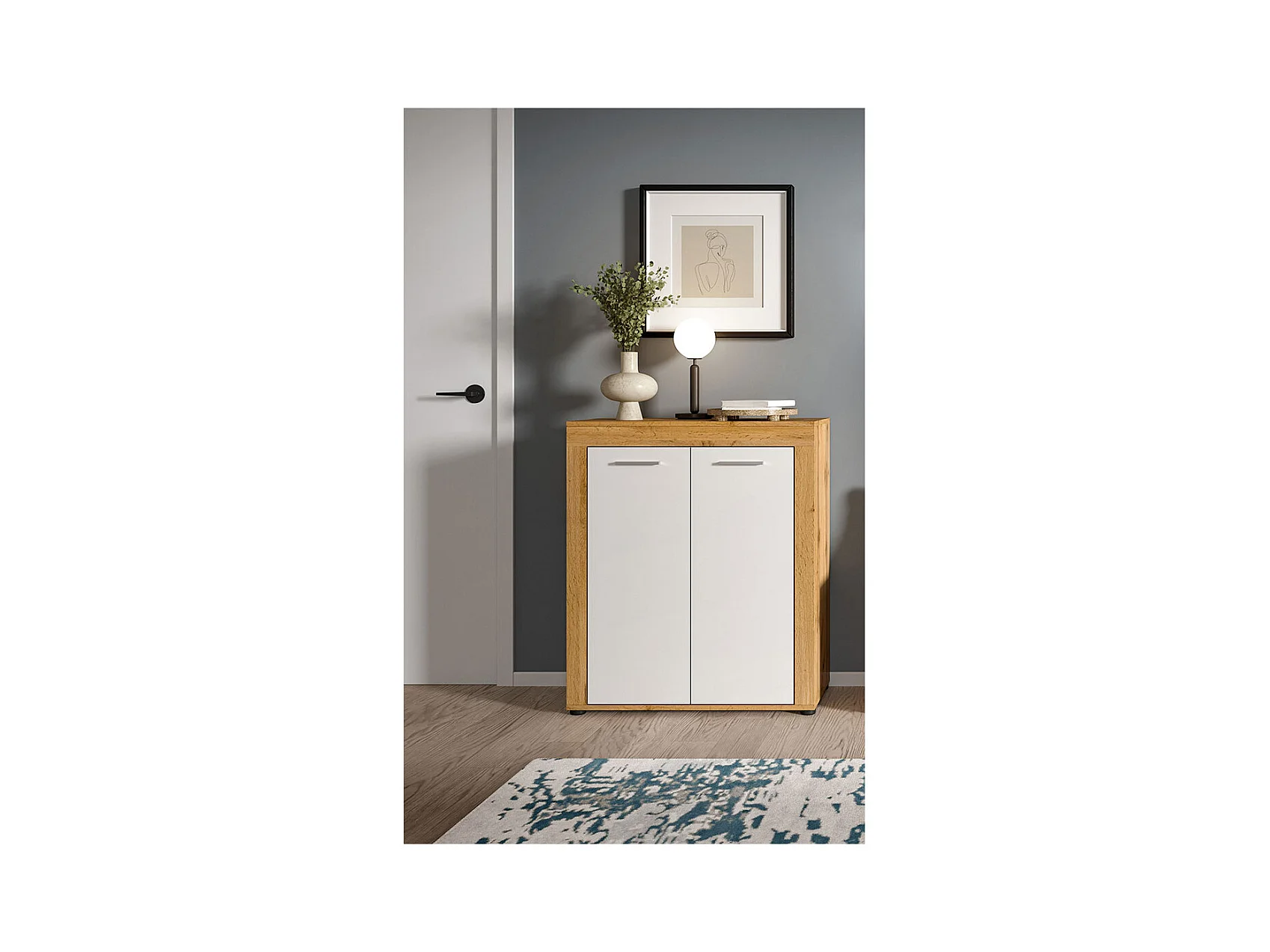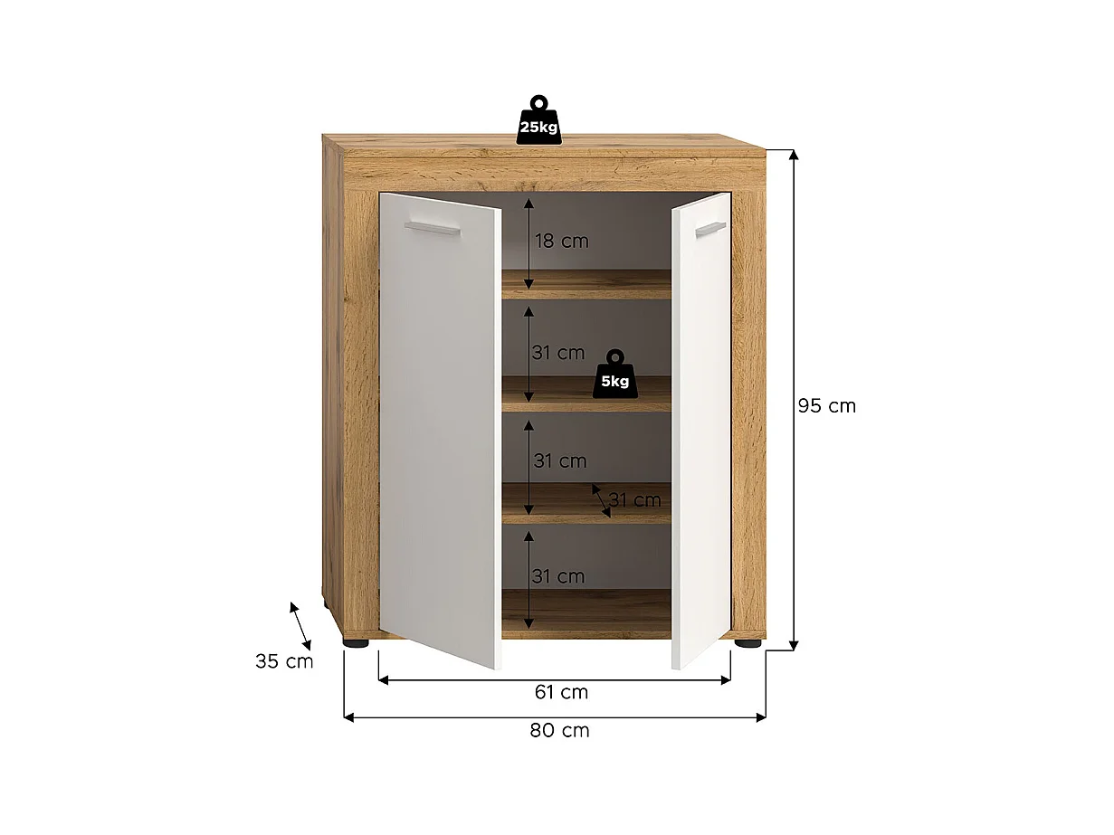 Jam meuble à chaussures 2 portes blanc, chêne décor.