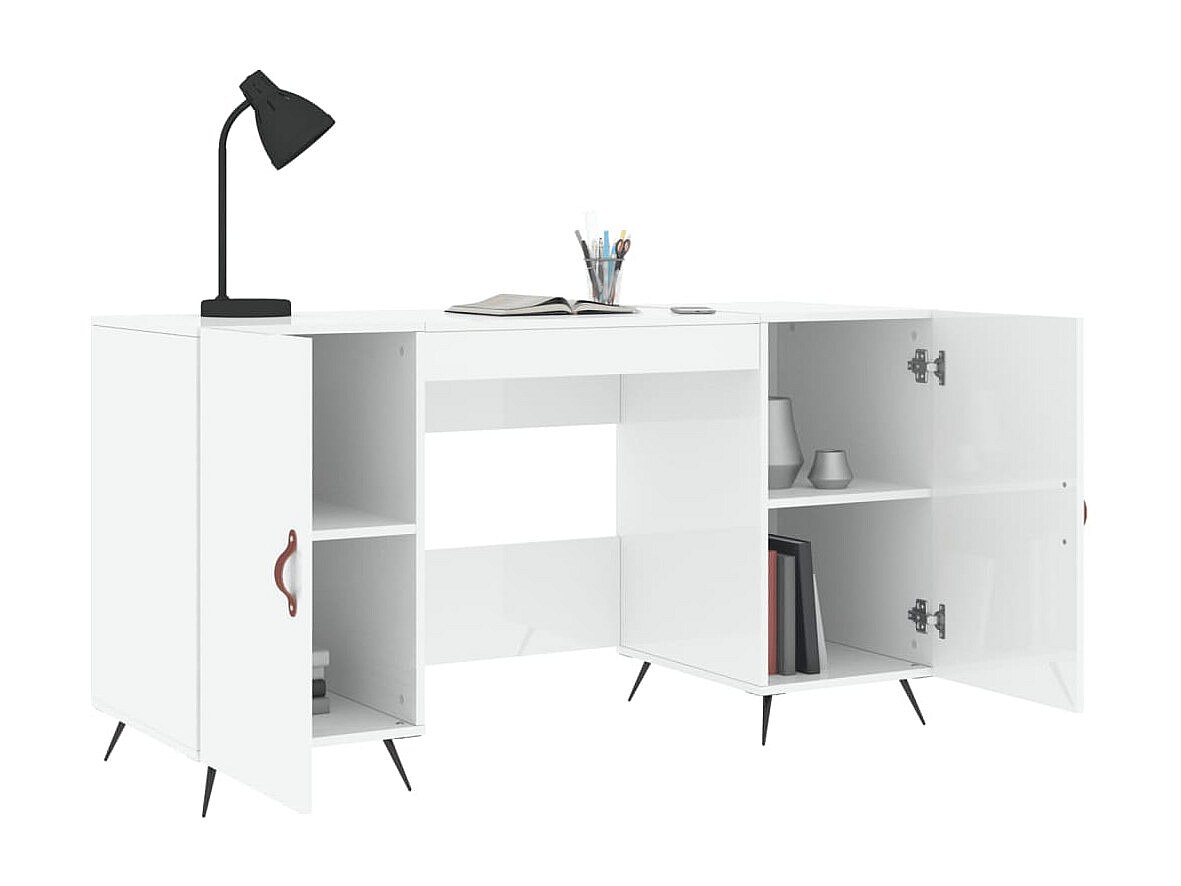 Jan Bureau Blanc brillant 140x50x75 cm Bois d'ingénierie