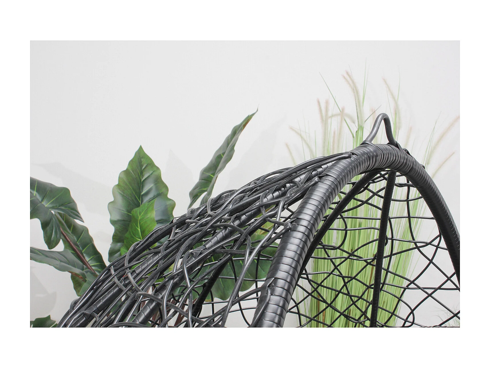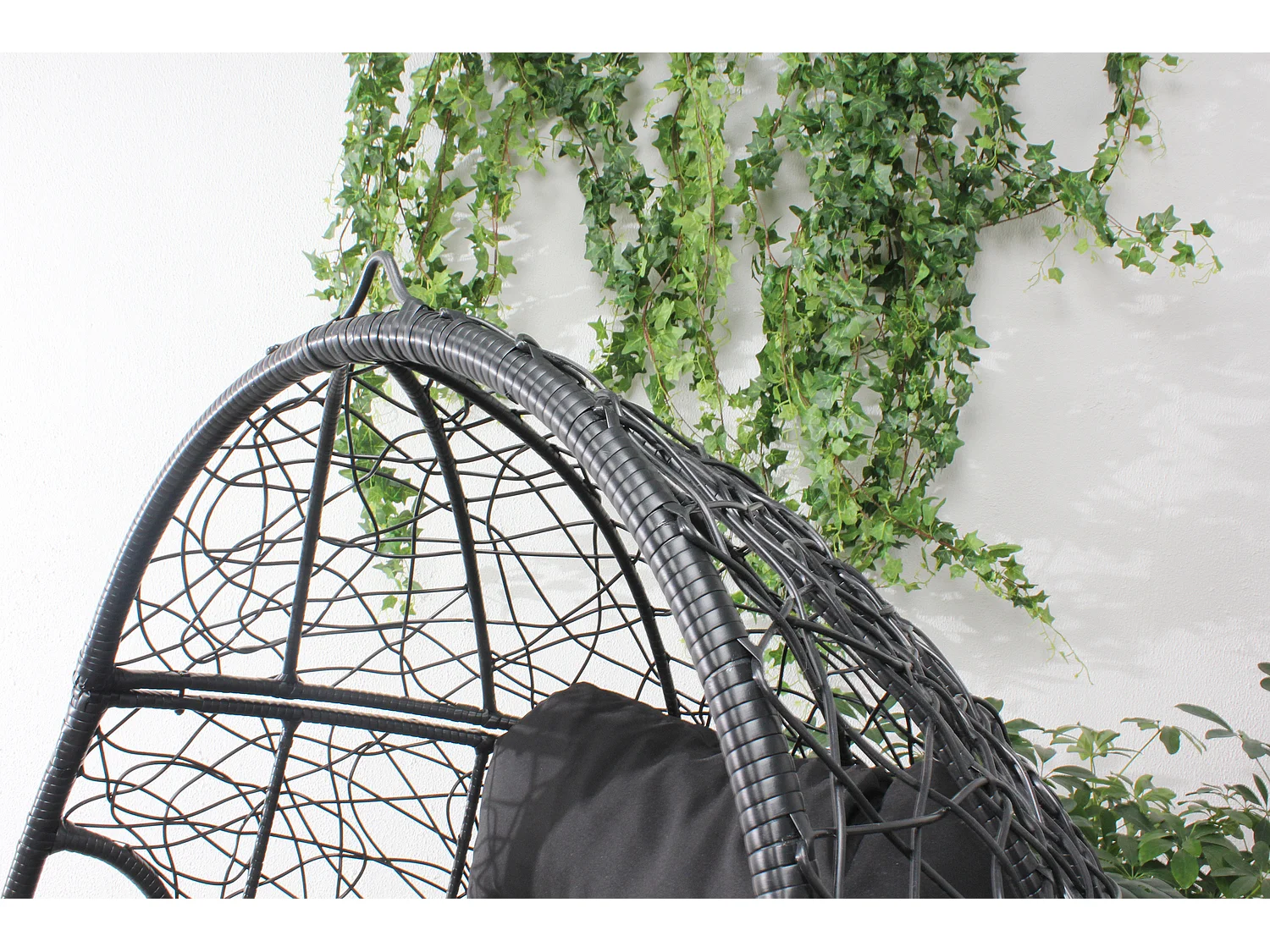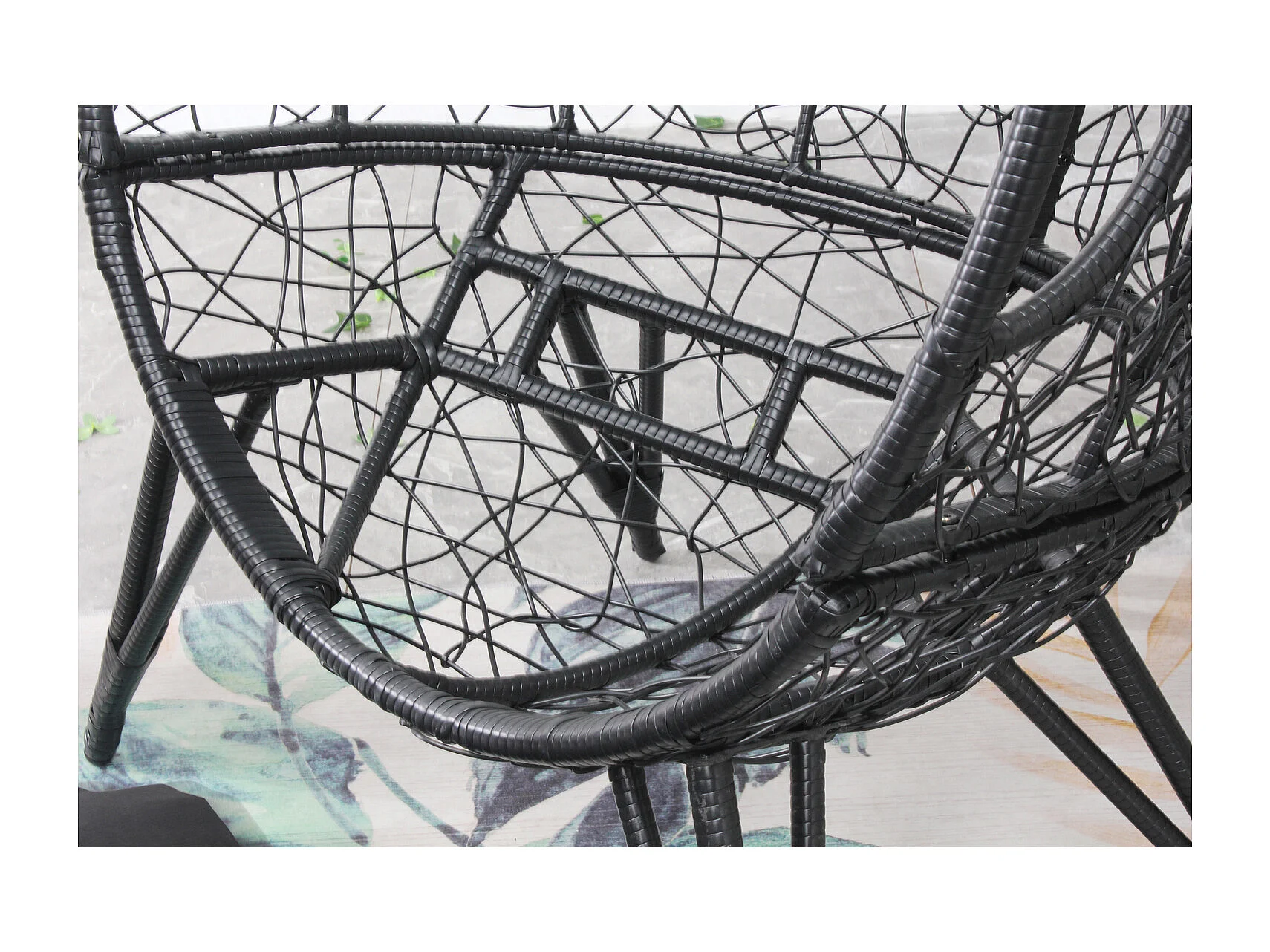 Fauteuil œuf sur pied en résine noir effet rotin JANE