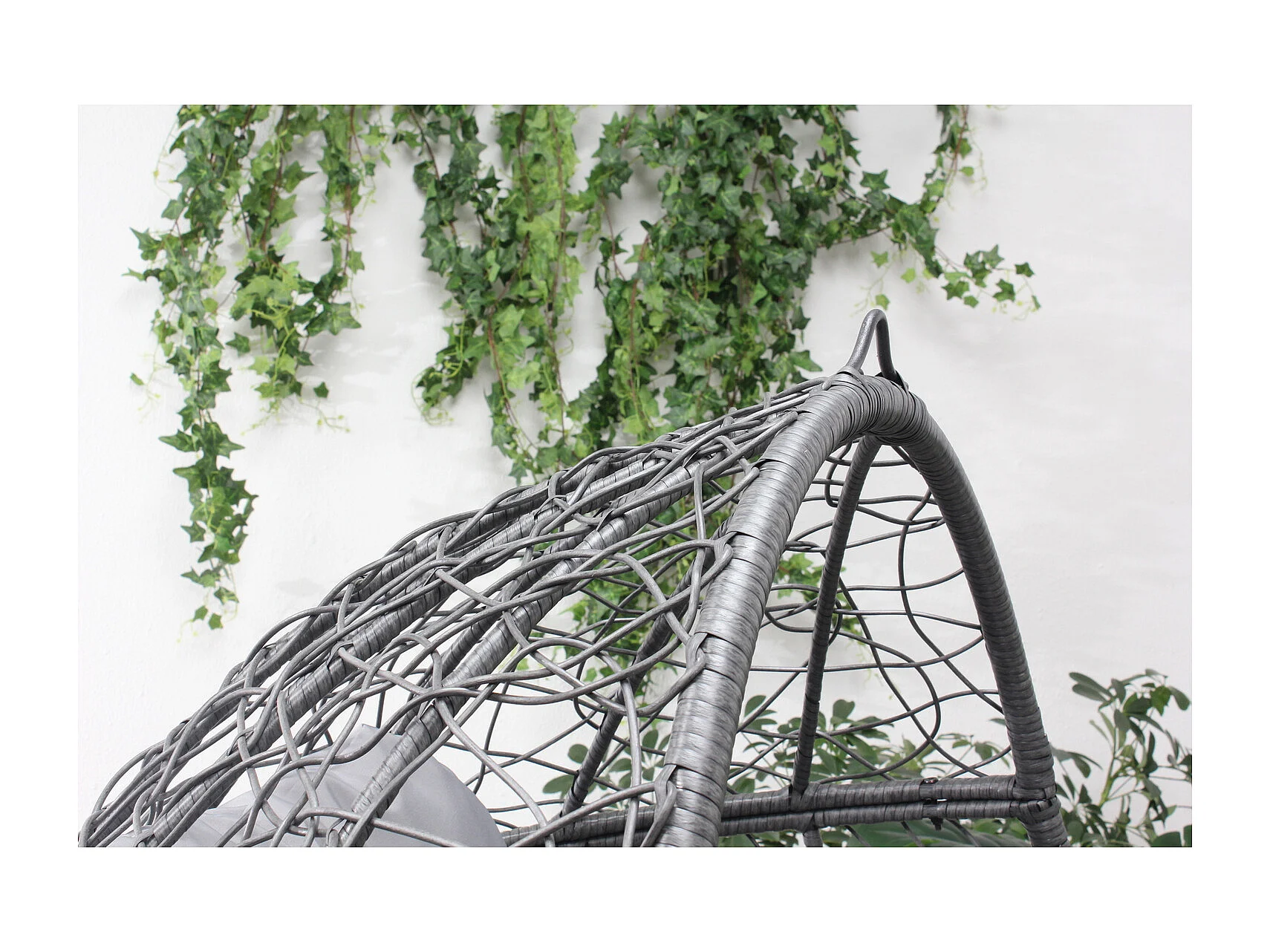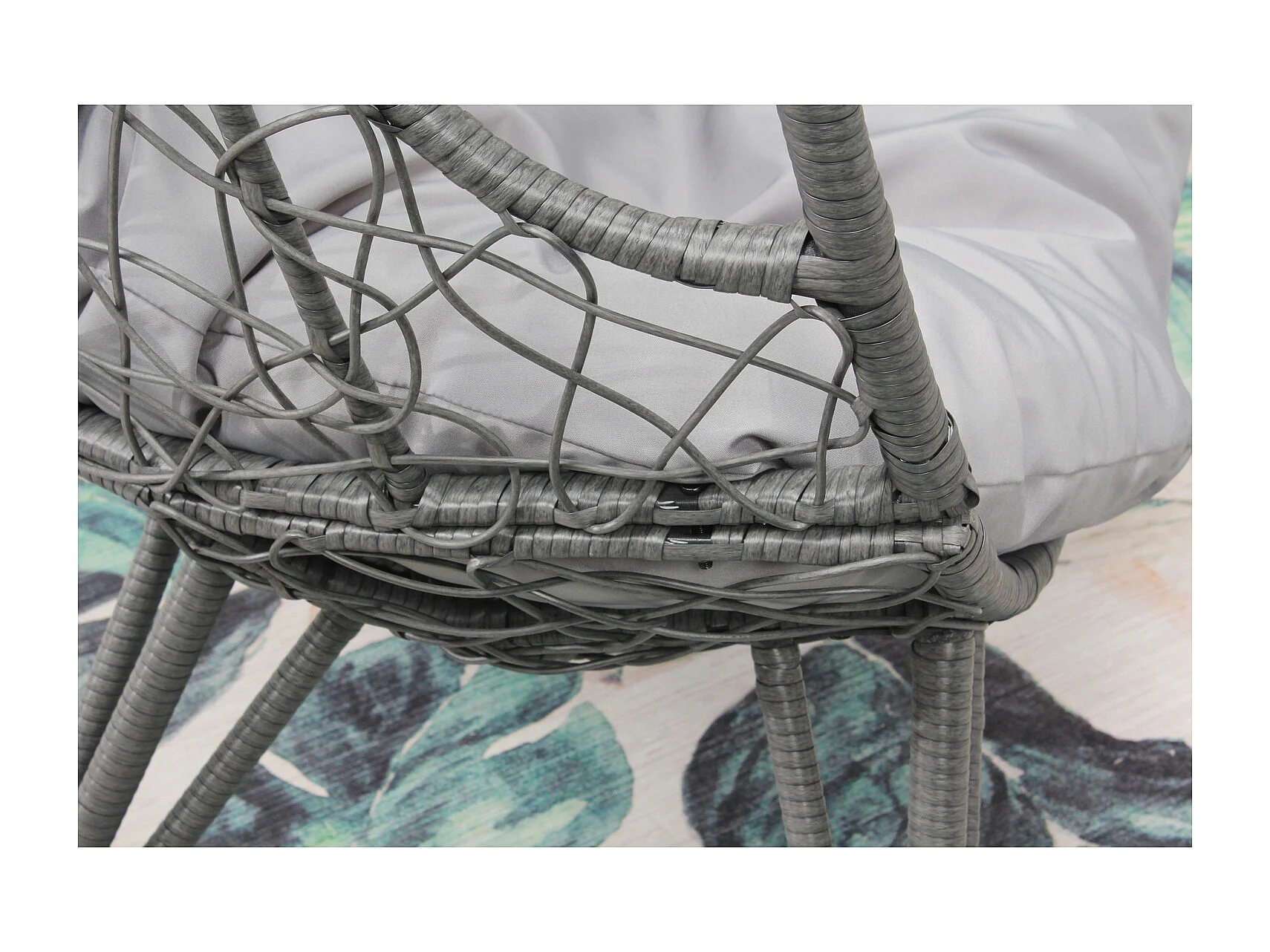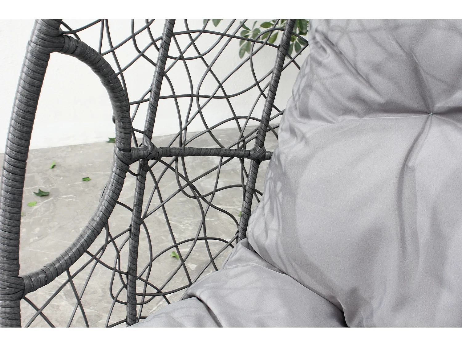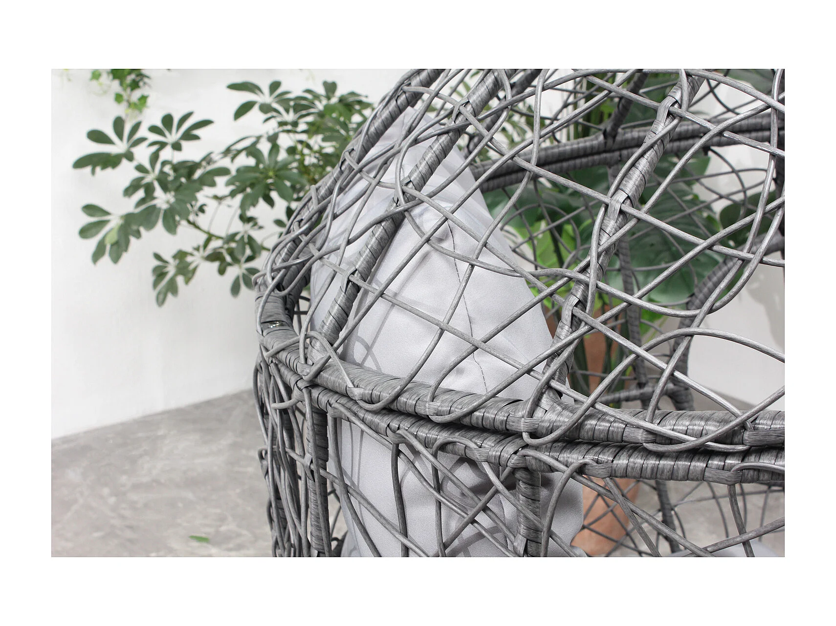 Fauteuil œuf sur pied en résine gris effet rotin JANE