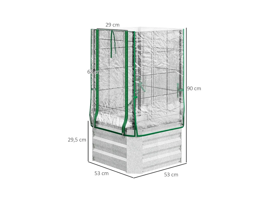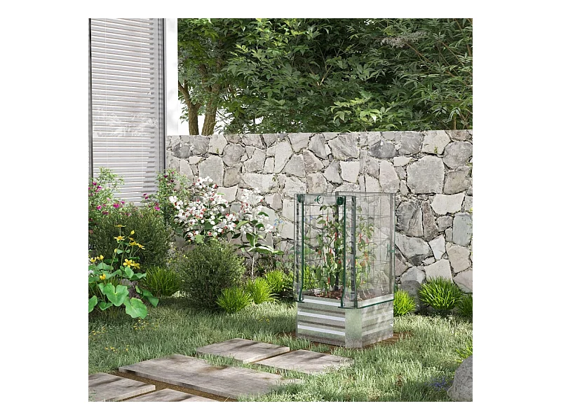 Serre tunnel avec fenêtres à fermeture éclair, cadre en acier, PVC transparent, 395 x 100 x 80 cm (395x100x80 cm)