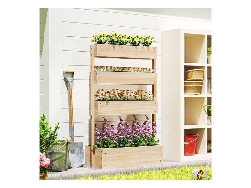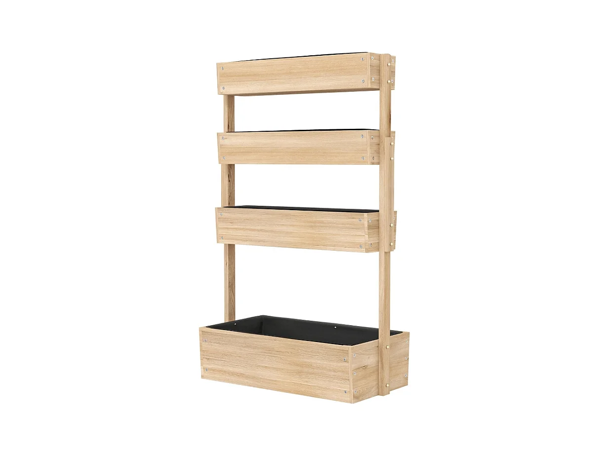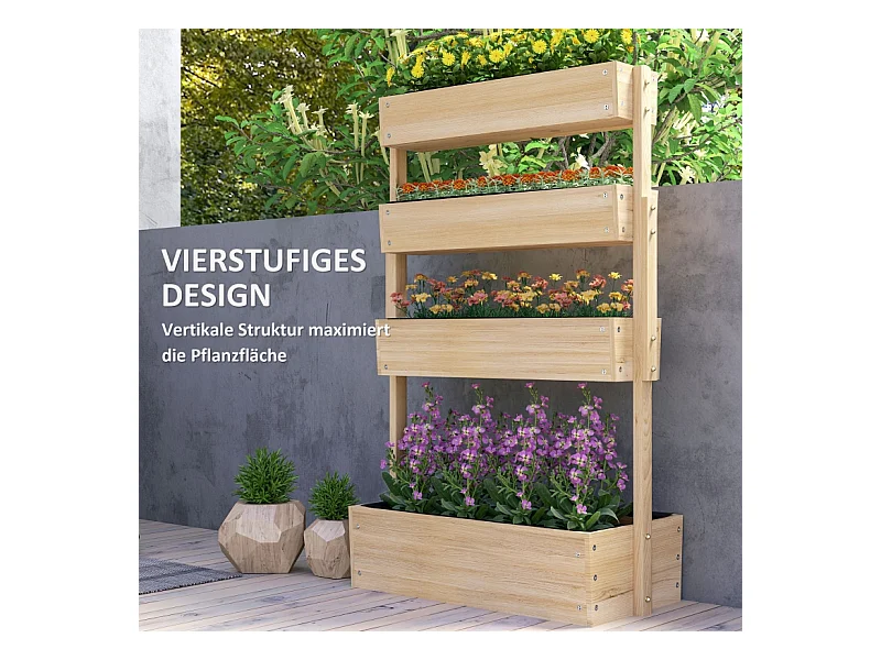 Jardin surélevé en bois, 4 niveaux, avec trous de drainage, bac à légumes pour jardin, balcon, bois naturel (88.5x45x140 cm)