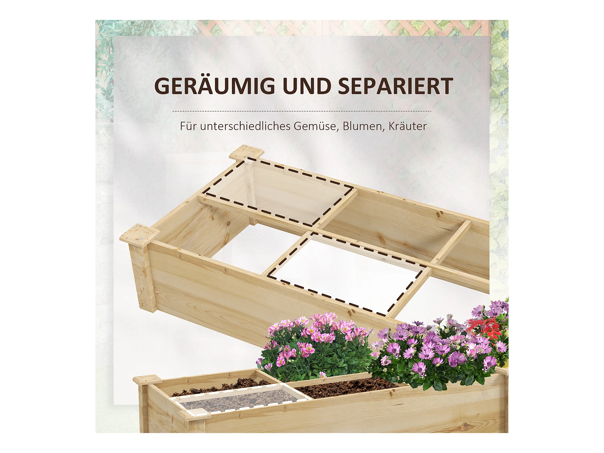 Jardin surélevé en bois avec 2 compartiments, pour terrasse et balcon, naturel (237x60x25 cm)