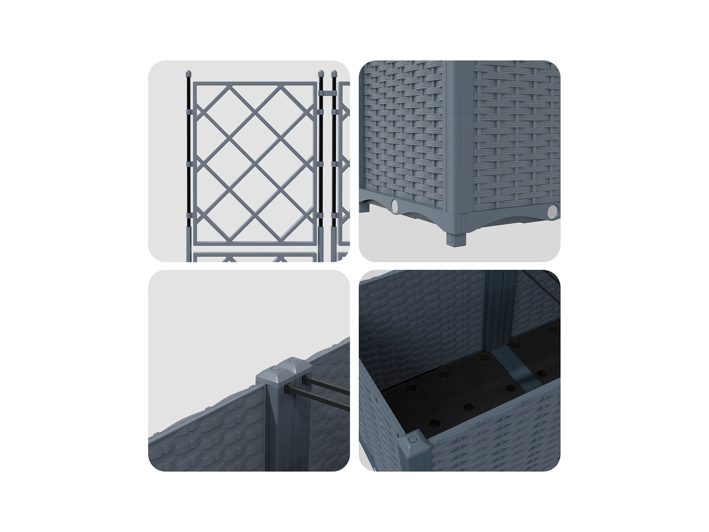 Jardinière avec treillis bleu gris 80x80x136 cm PP