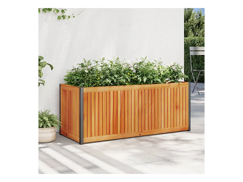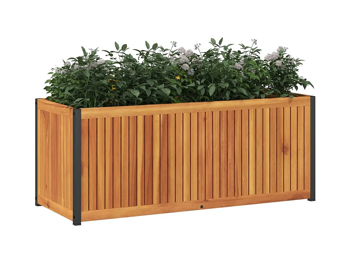 Jardinière 110x30x27,5 cm bois massif d'acacia et acier