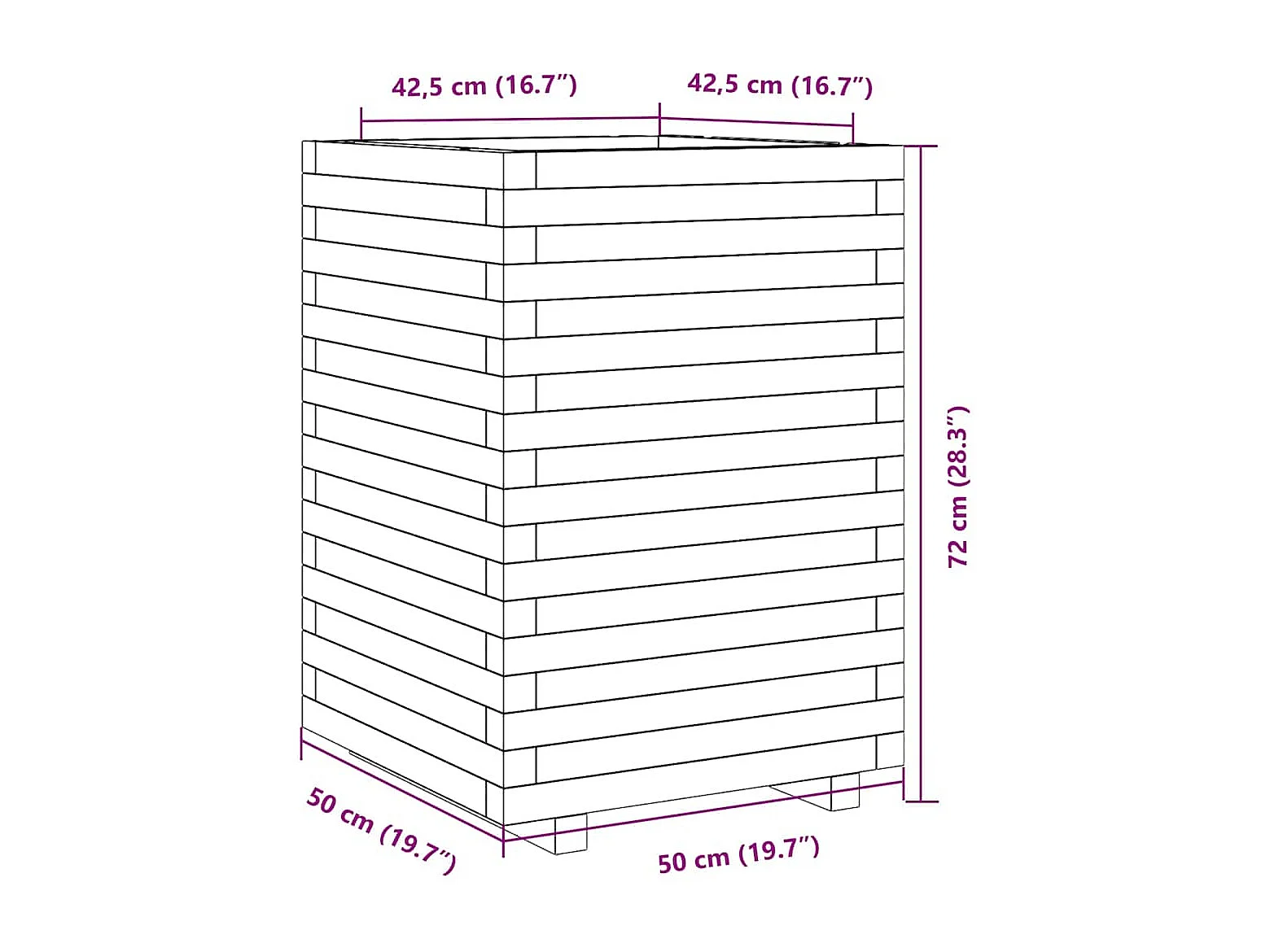 Jardinière 50x50x72 cm bois de pin massif