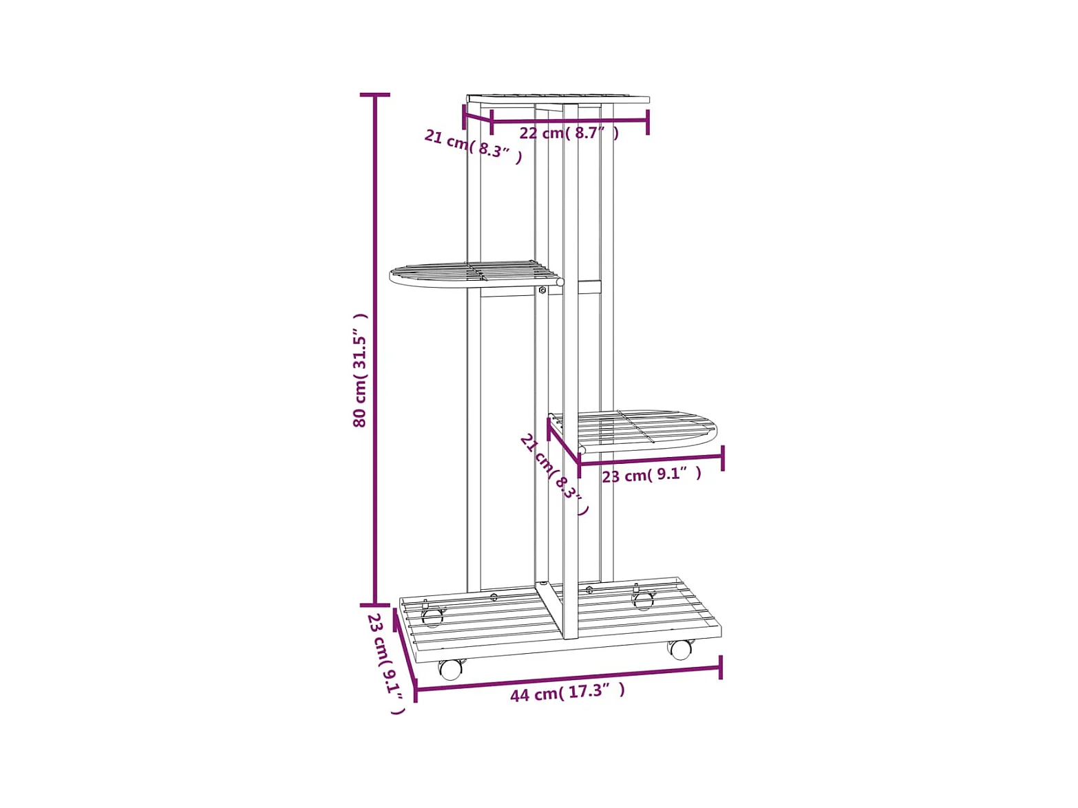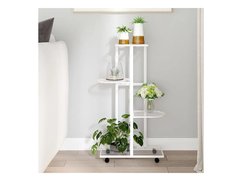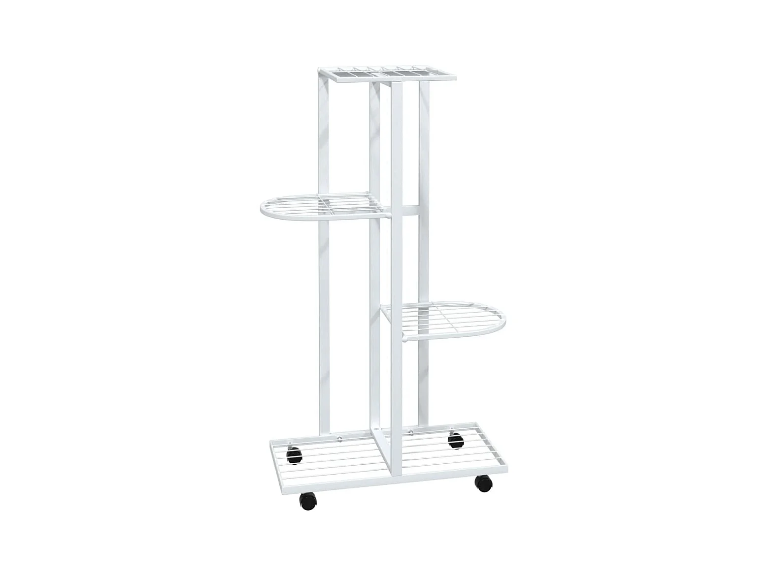 Jardinière à 4 niveaux avec roues 44x23x80 cm Blanc Fer