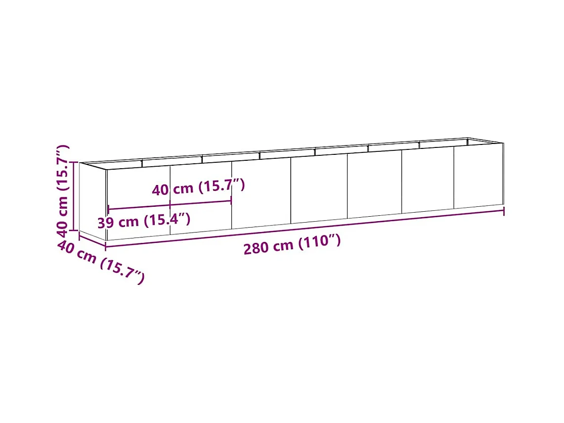 Jardinière anthracite 280x40x40 cm acier laminé à froid
