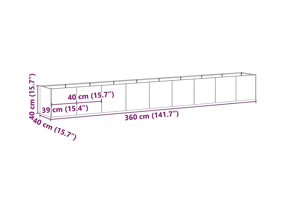 Jardinière anthracite 360x40x40 cm acier laminé à froid