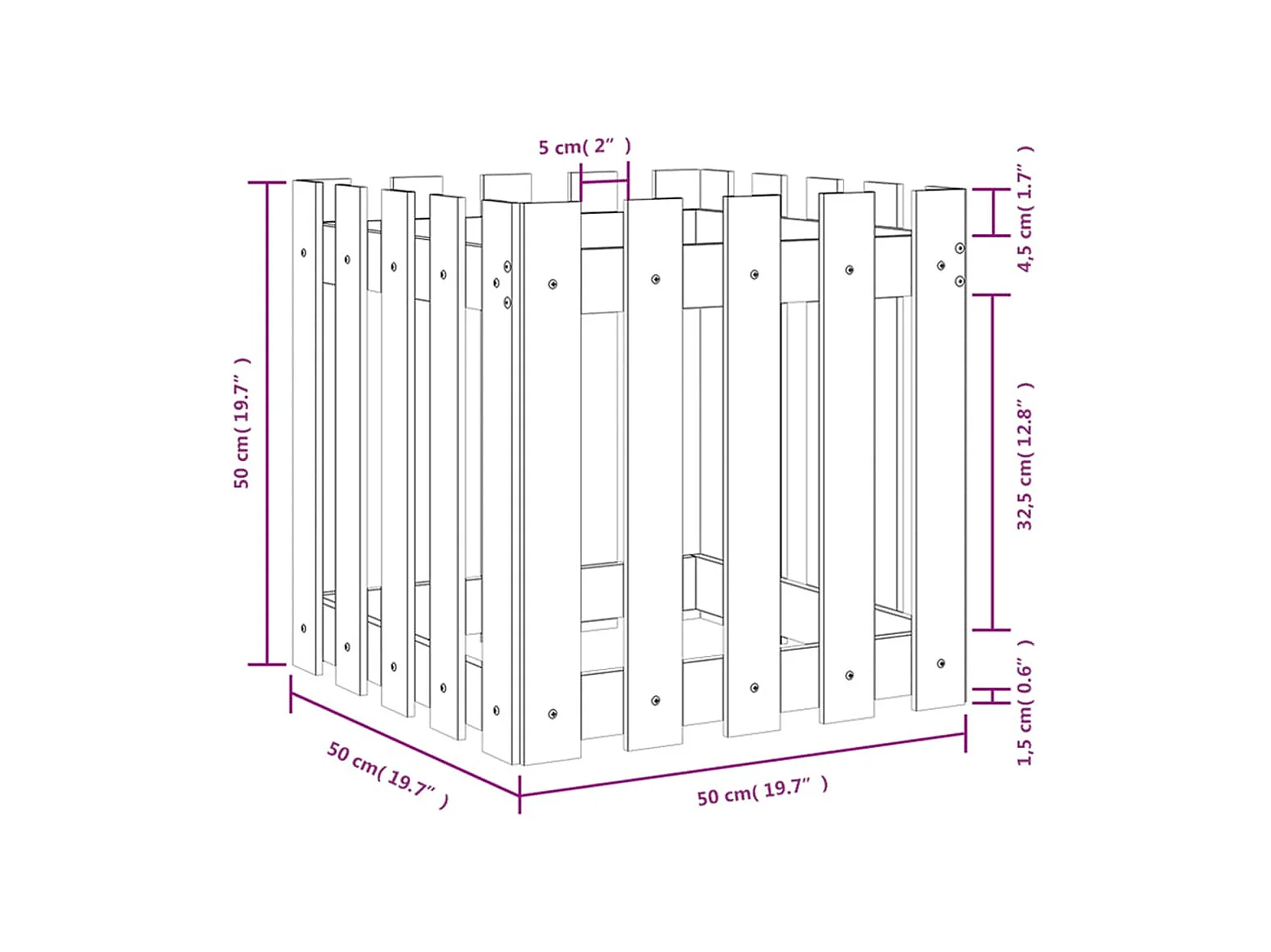 Jardinière avec design de clôture 50x50x50 cm pin imprégné