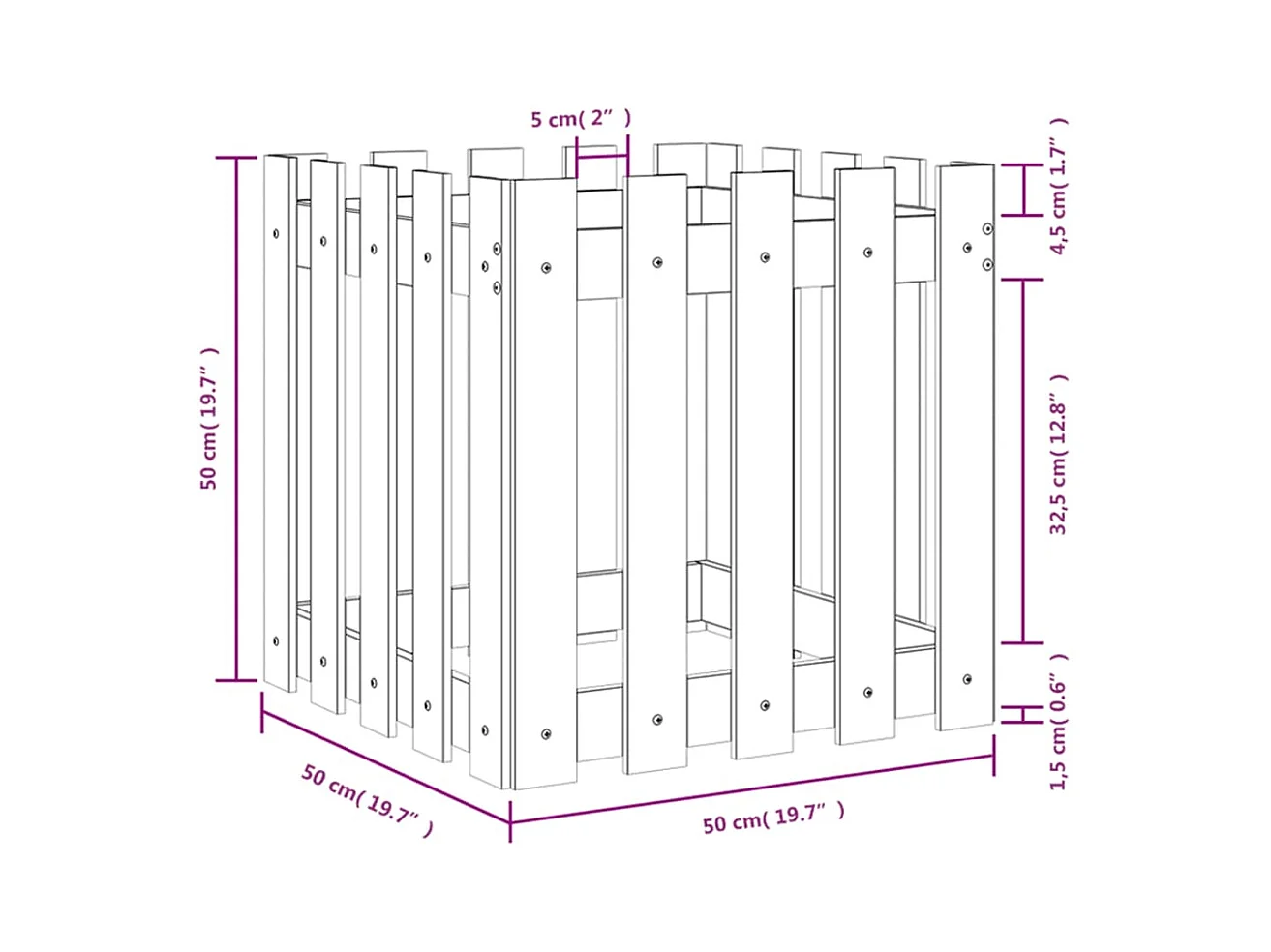 Jardinière avec design de clôture 50x50x50 cm pin massif