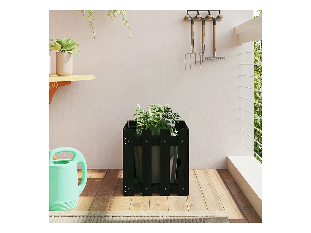 Jardinière avec design de clôture noir 40x40x40 cm pin massif BE3962