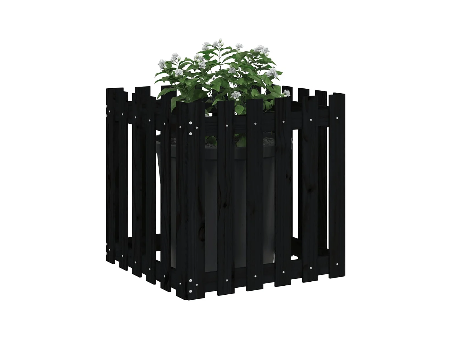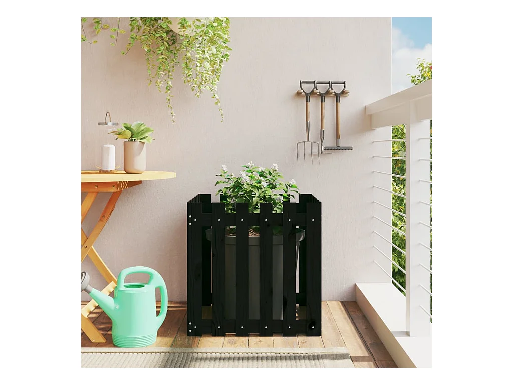 Jardinière avec design de clôture noir 40x40x40 cm pin massif