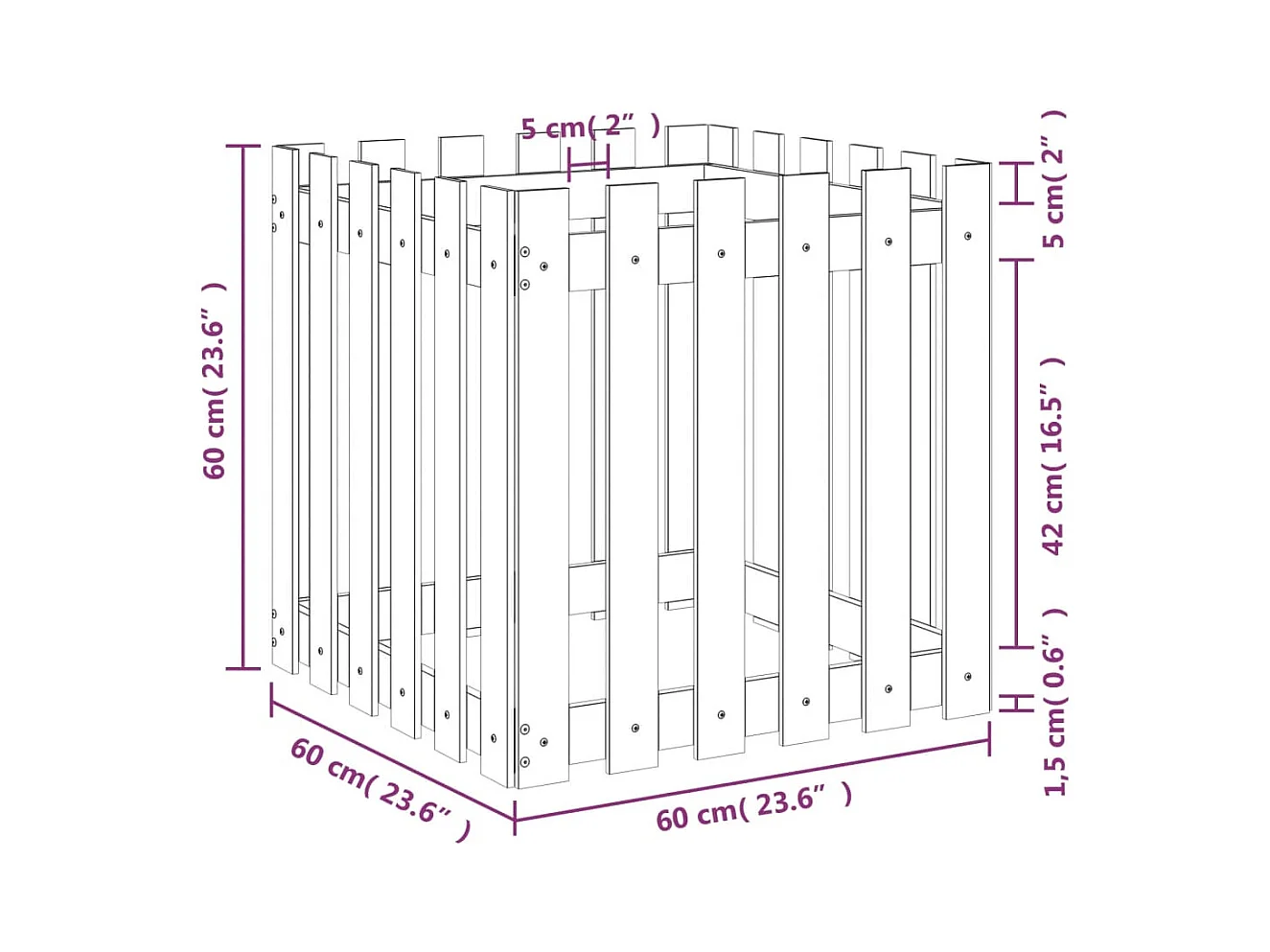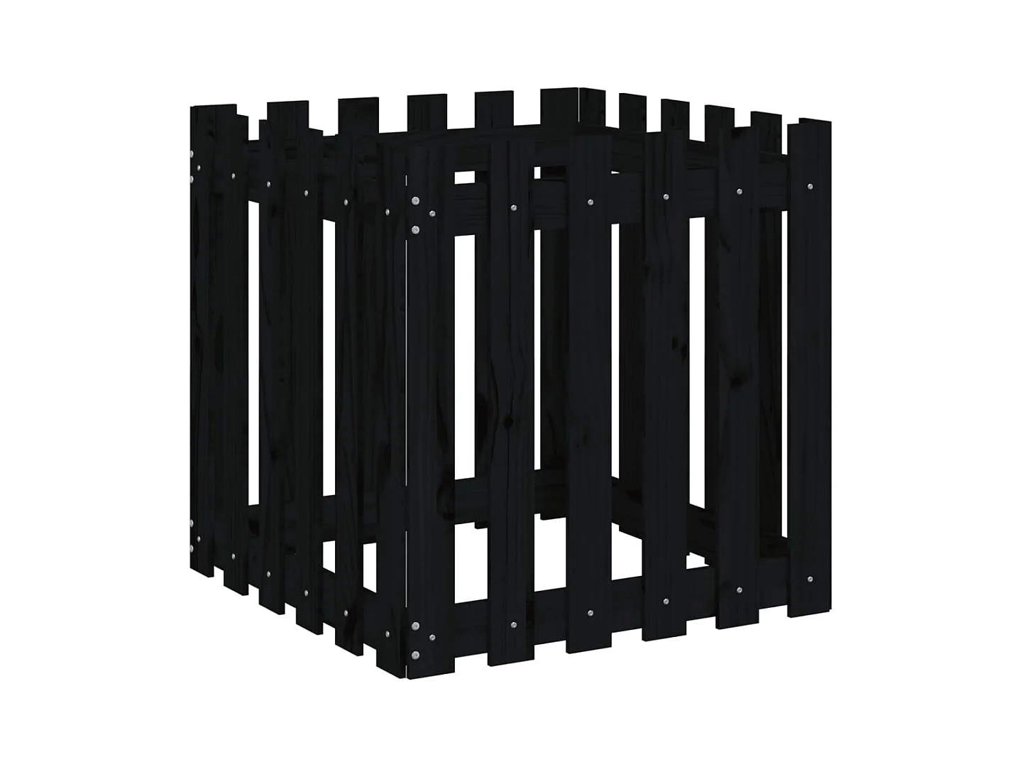 Jardinière avec design de clôture noir 60x60x60 cm pin massif