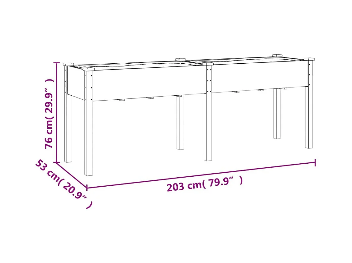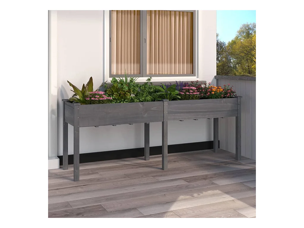 Jardinière avec doublure gris 203x53x76 cm bois massif de sapin