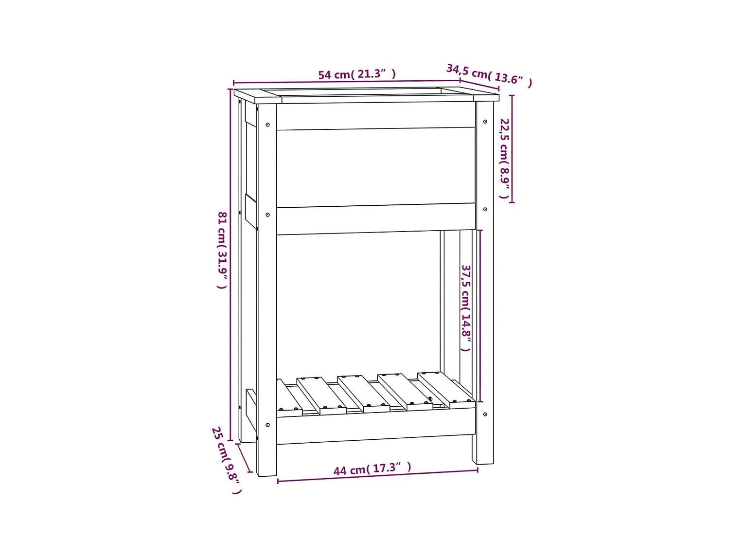 Jardinière avec étagère Gris 54x34,5x81 cm Bois massif de pin