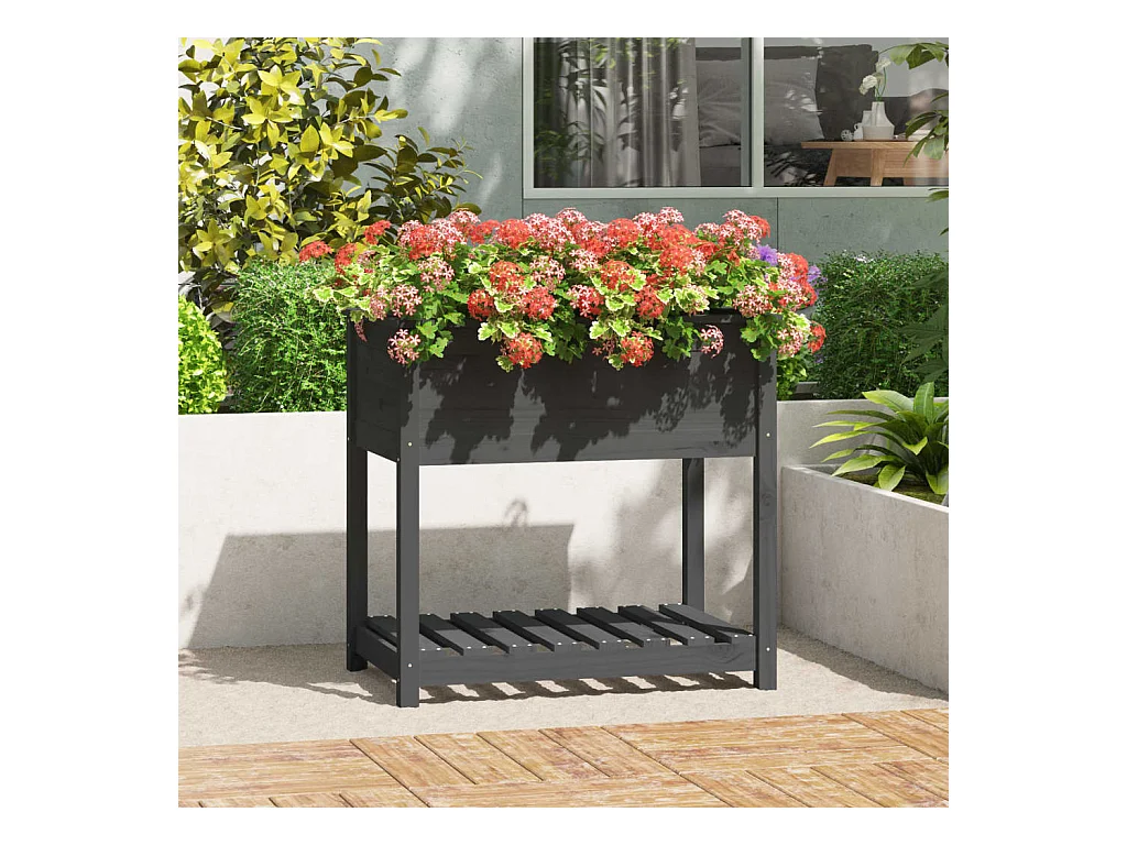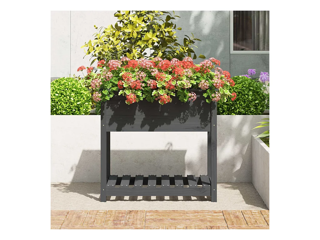 Jardinière avec étagère Gris 82,5x82,5x81 cm Bois massif de pin