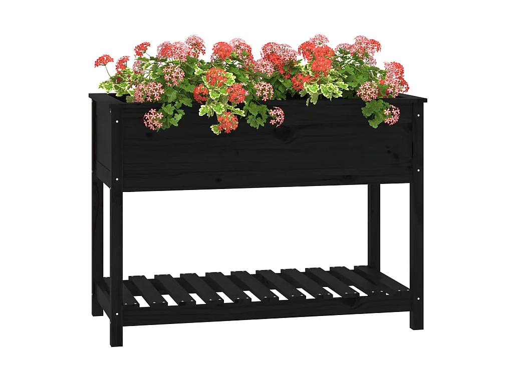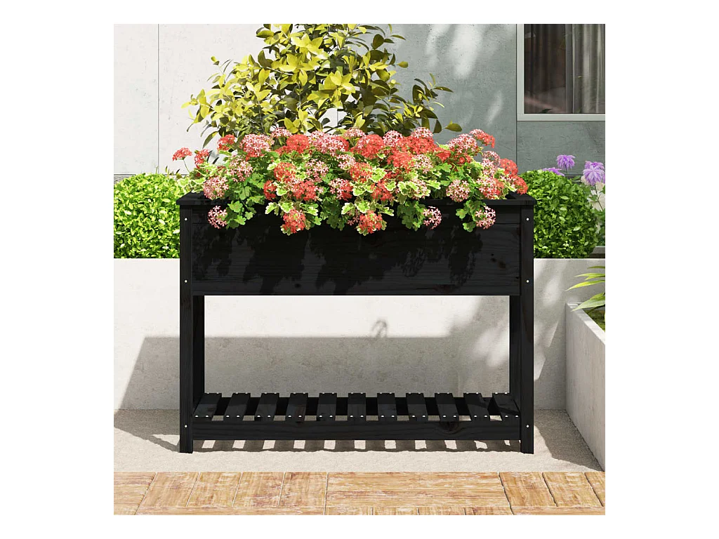 Jardinière avec étagère Noir 82,5x82,5x81 cm Bois massif de pin BE2932