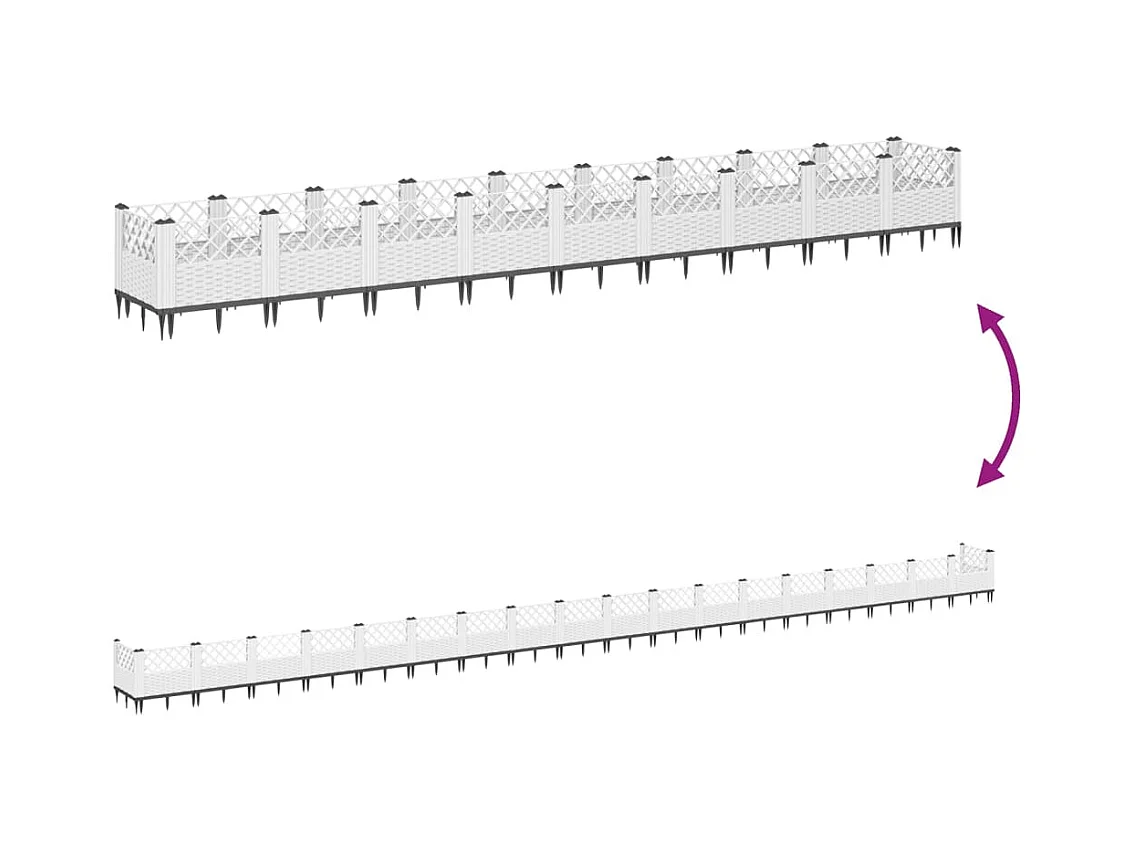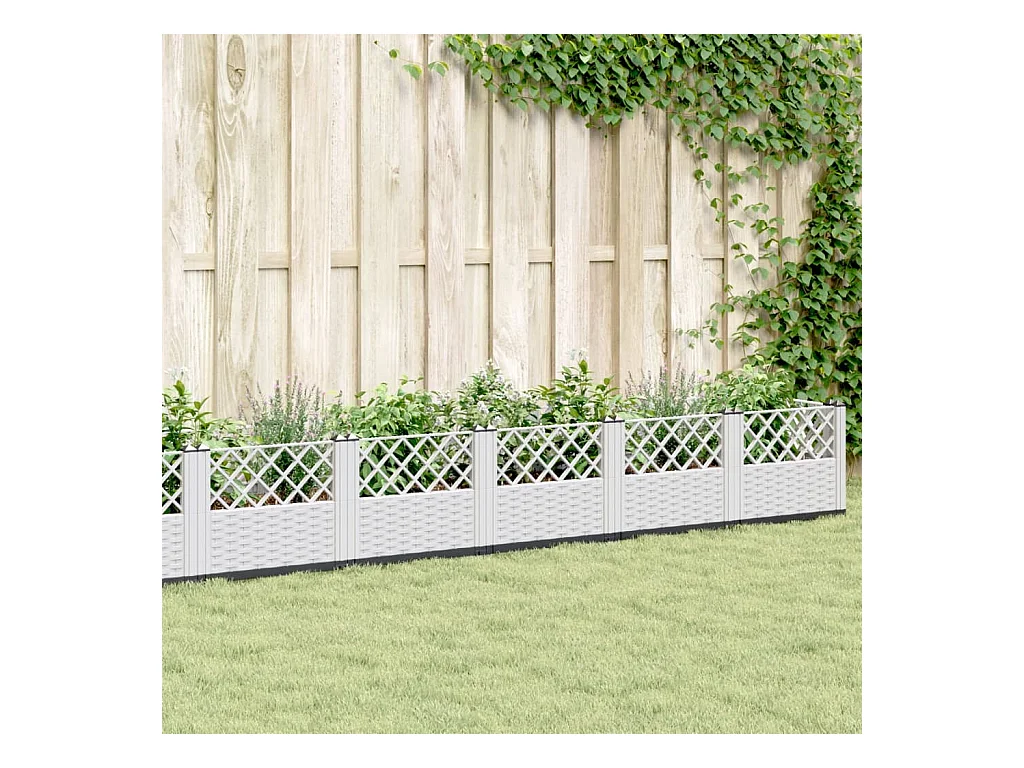 Jardinière avec piquets blanc 363,5x43,5x43,5 cm PP