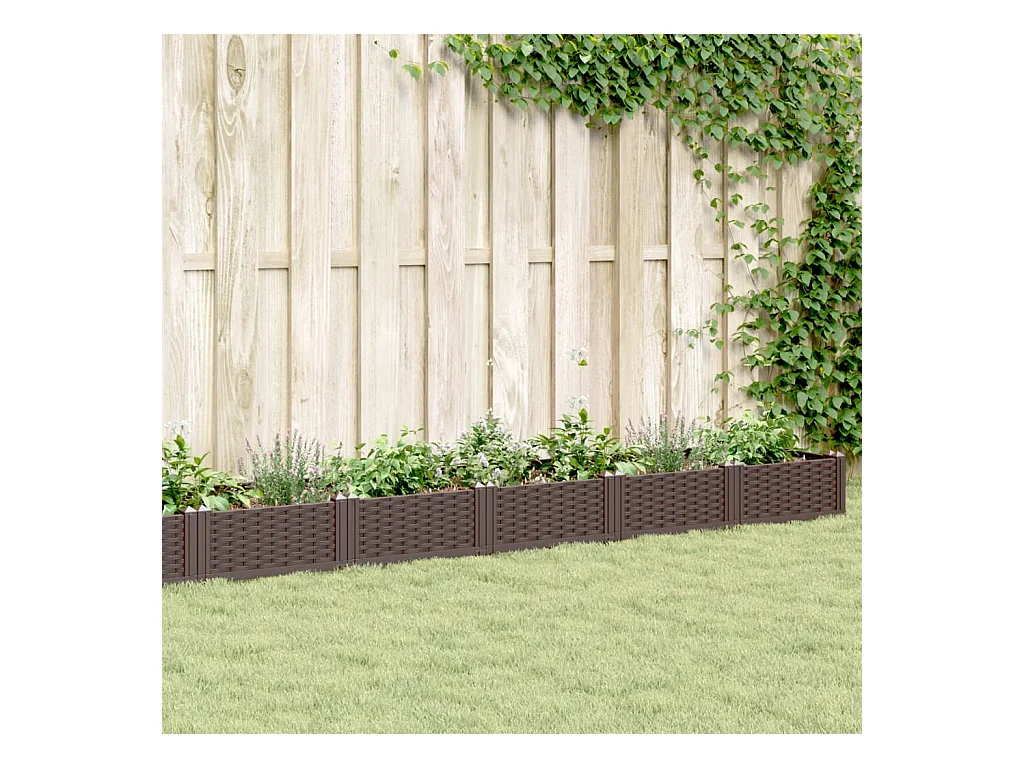 Jardinière avec piquets marron 362,5x42,5x28,5 cm PP FR56768