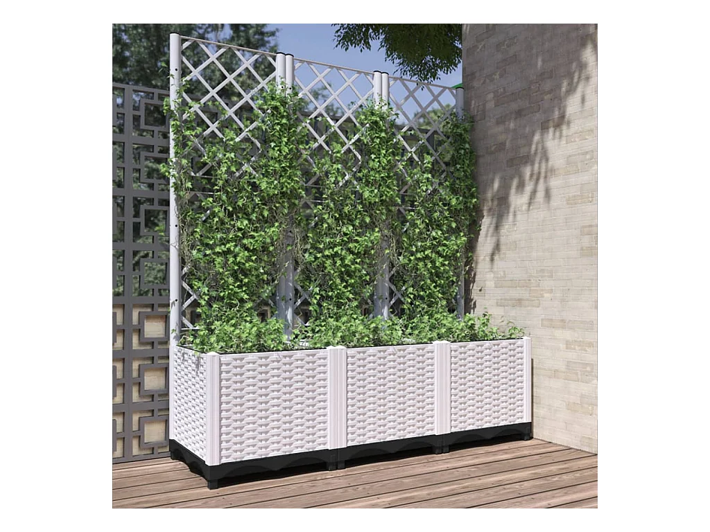 Jardinière avec treillis Blanc 120x40x121,5 cm PP FR26510