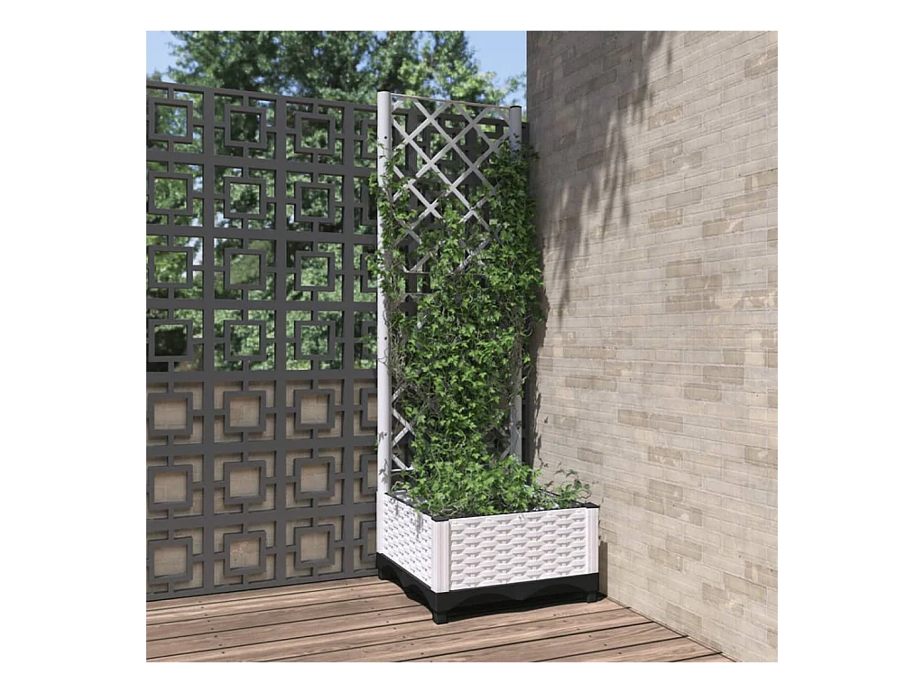 Jardinière avec treillis Blanc 40x40x121,5 cm PP FR54469