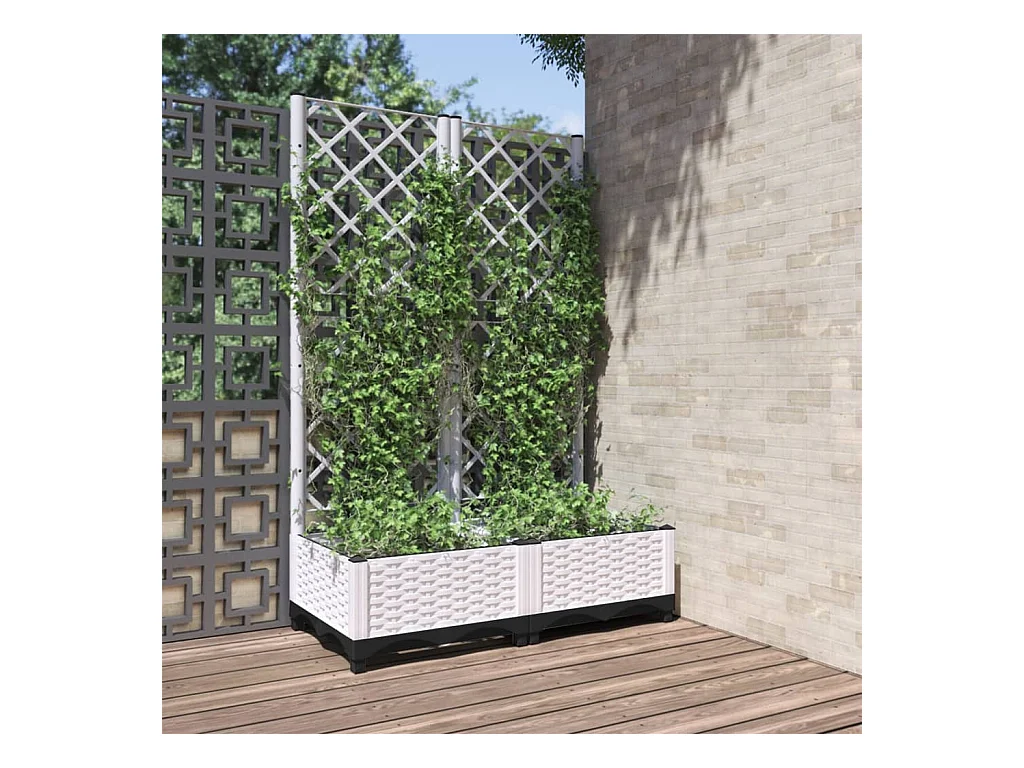 Jardinière avec treillis blanc 80x40x142,5 cm PP FR73123