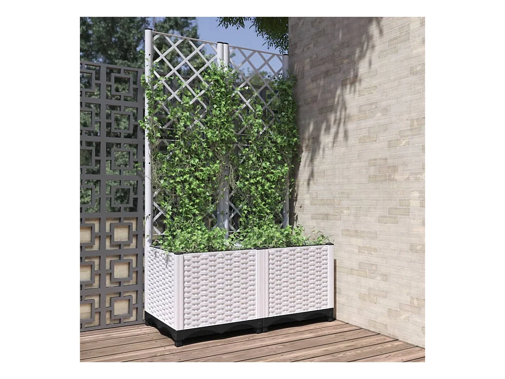 Jardinière avec treillis blanc 80x40x142,5 cm PP FR73123